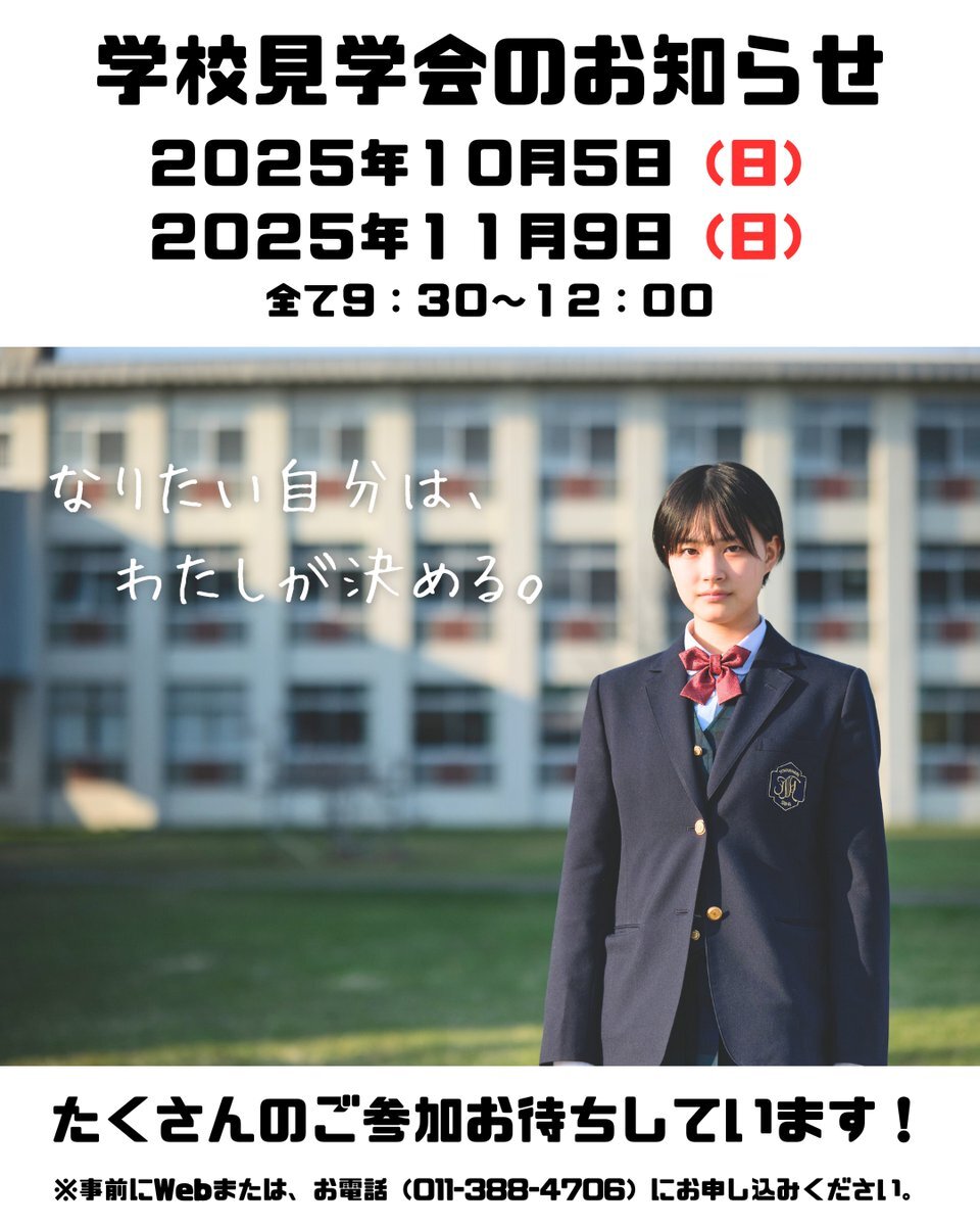 【学校見学会のご案内】今年度第2回目となる学校見学会は、今週末10月5日(日)に開催❗たくさんのご参加、お待ちしています😊見学及び体験可能部活動は、下記URLより、ご確認ください😁 san-ai.ed.jp/archives/26735… #とわの森三愛 #中学生 #学校見学会 #オープンスクール #北海道 # #全日制 #通信制 pic.x.com/3uRt95uOas