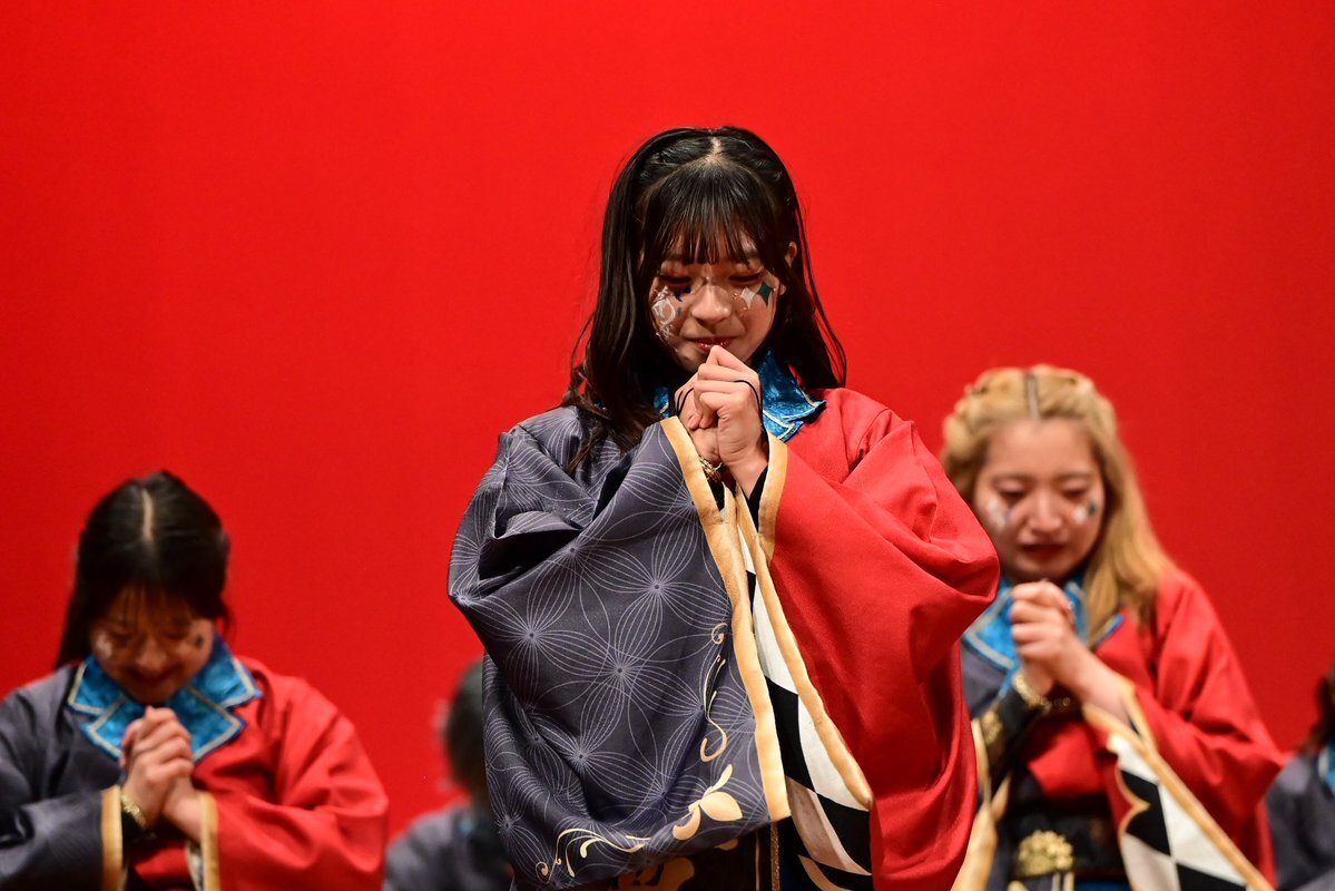 「誰かが言う」「知りたくもない」「いつまで続けられるだろう」に合わせながらの振り付けも迫力あってかっこよく、手を上げたり広げたりしながらの振り付けに「歩んだ奇跡の」に合わせながらの振り付けも迫力あってかっこよく、 #学生よさこいチームおどりんちゅ らしい演舞ができている!