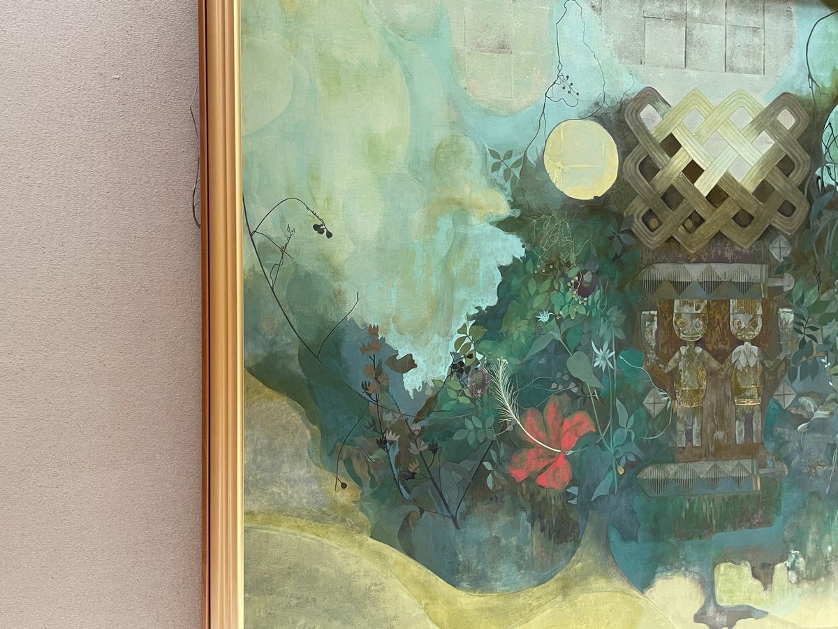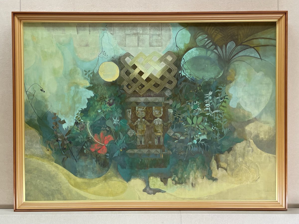 ん?絵の枯れ枝が現実世界に飛び出してきた?? んなわけはなく、展示用ワイヤーがこんにちはしてしまってました😅💦 直さねば。 田渕俊夫 ヨルバの神々 1968年 院展初入選作品 #平山郁夫美術館 #学芸員のお仕事 #美術館あるある #学芸員あるある #田渕俊夫 #文化勲章 (撮影&投稿:GのY) pic.x.com/1wbvQq7EIM