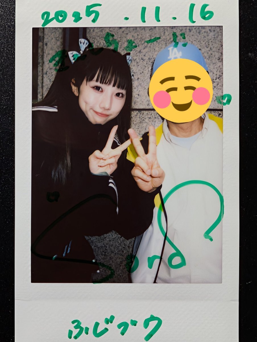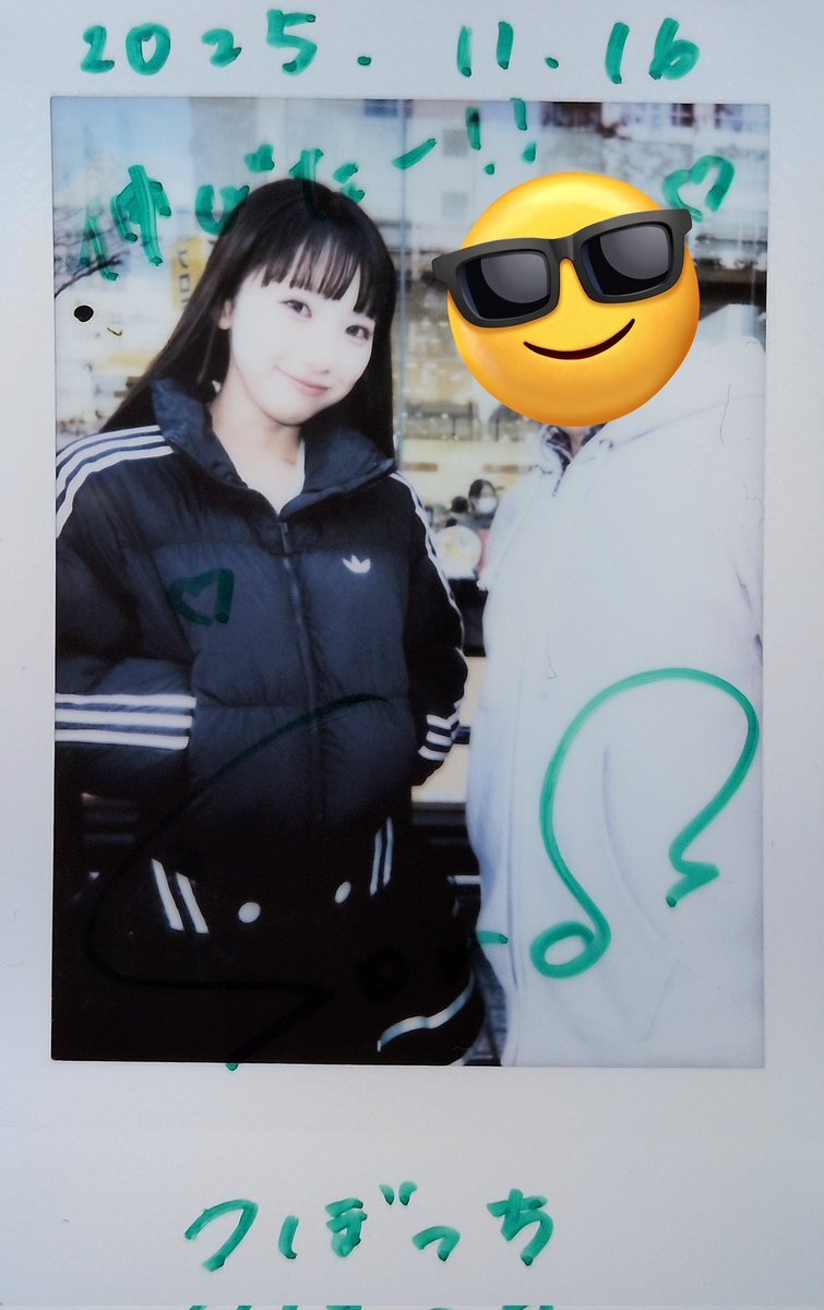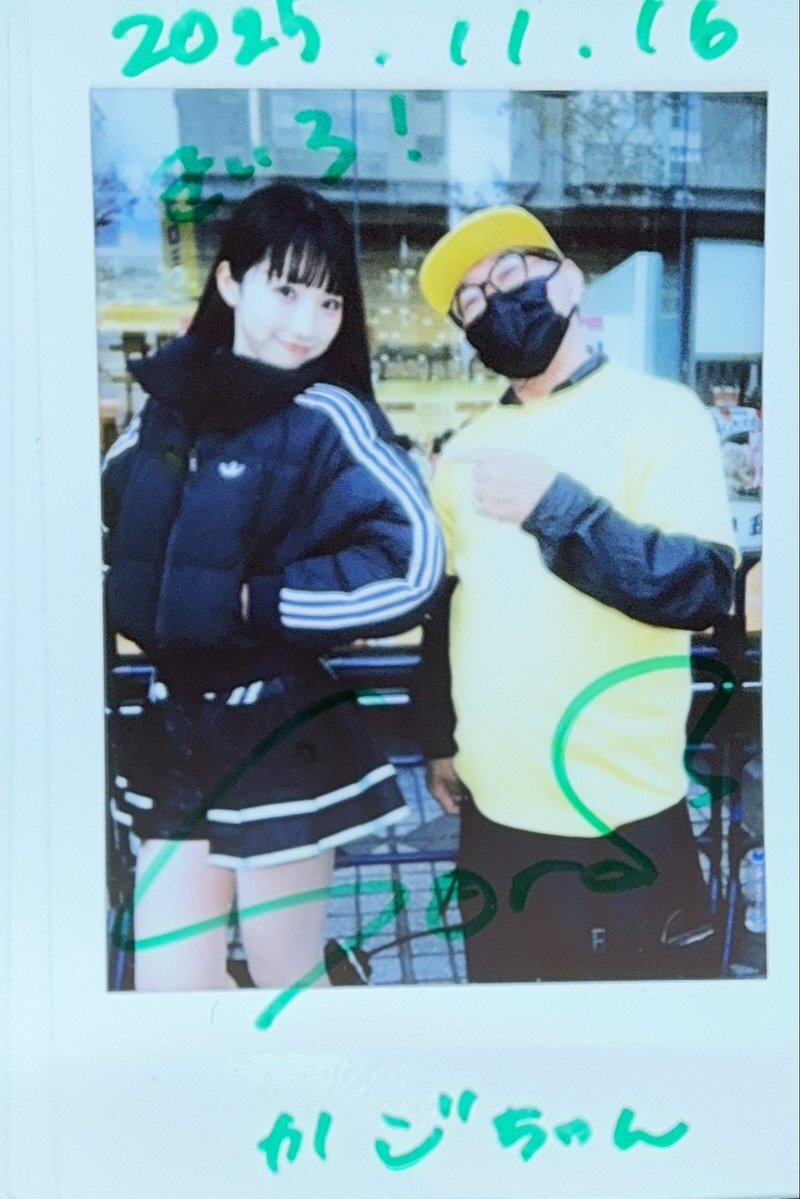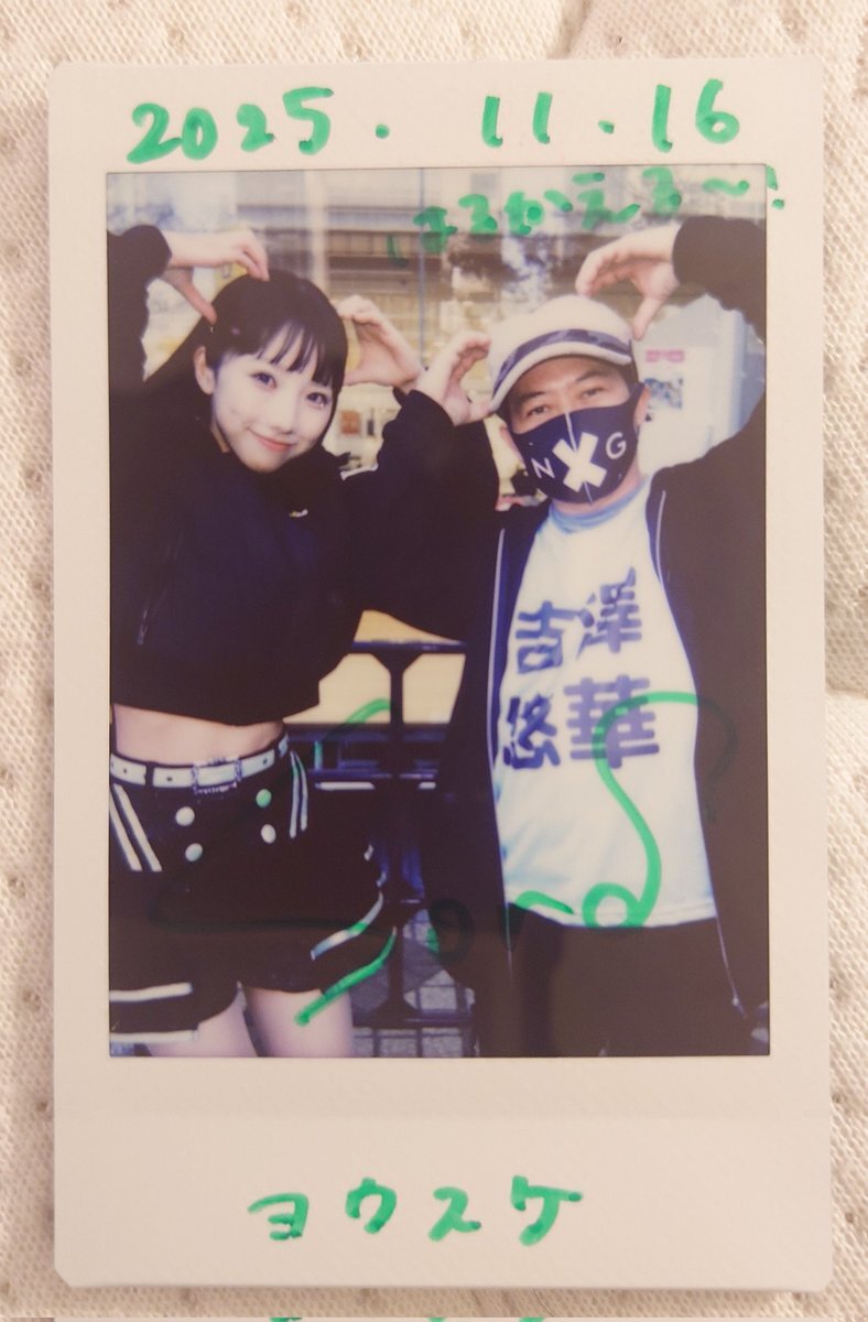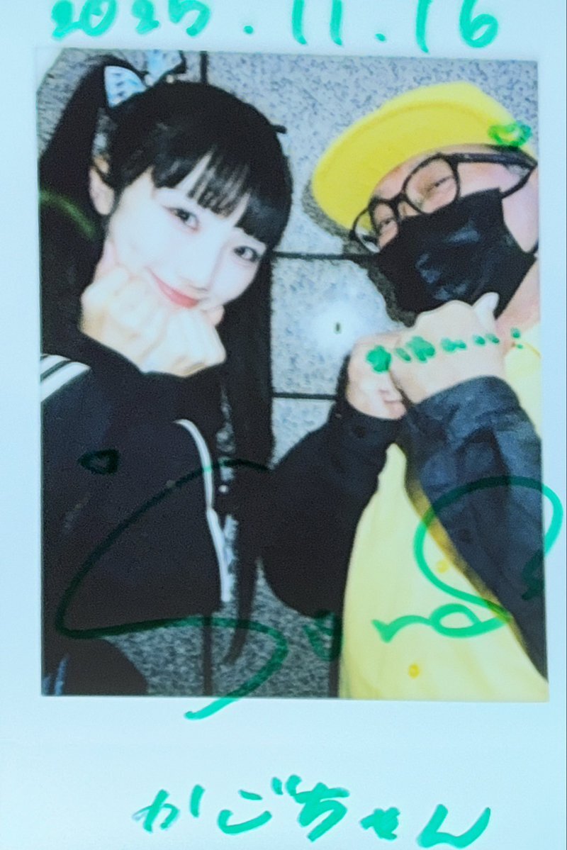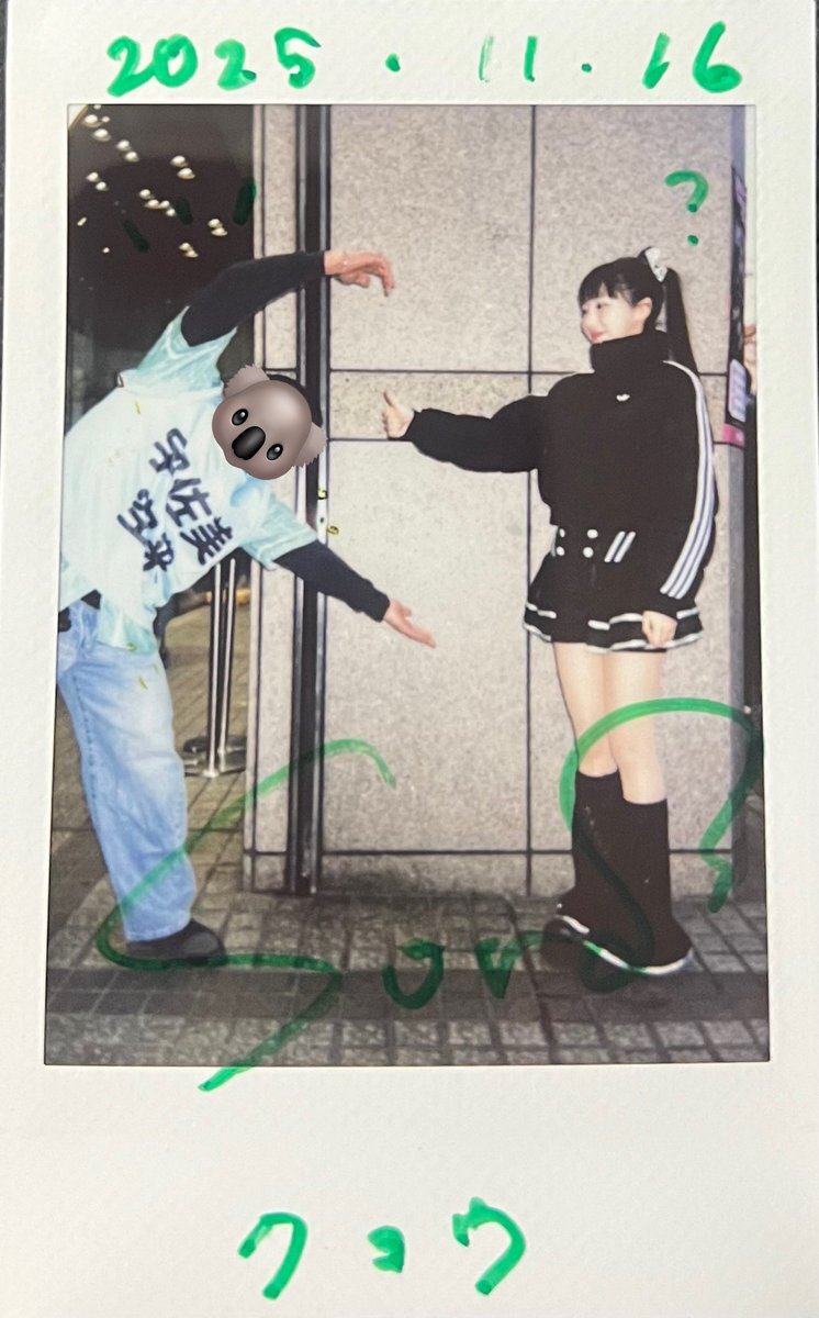 2025.11.16「Sugar Magic」リリースイベントin錦糸町マルイ 1F そらちゃんとチェキ ポーズおまかせではるかえるポーズでした 💚『今日は厚底じゃないの~?厚底の気分じゃ無いの~?』 あの厚底シューズ………長距離歩くと足疲れるんっすよ!w また今度w #マジパン #宇佐美空来 pic.x.com/r74ruCdoHF