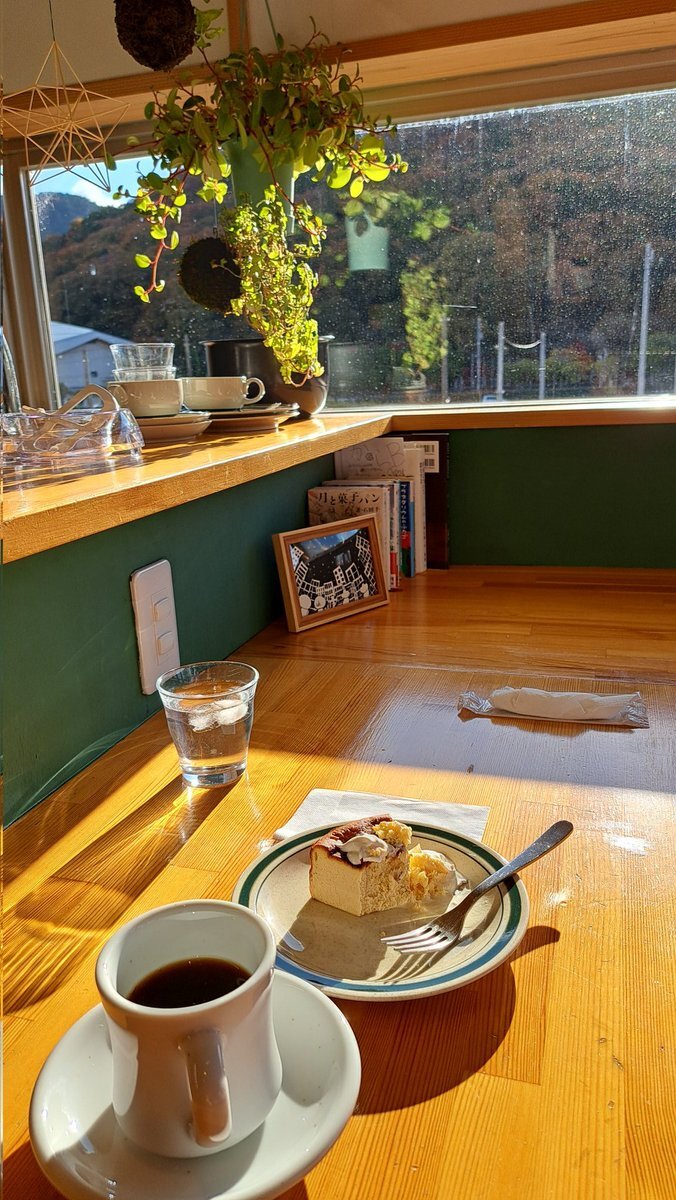 窓辺に降りそそぐ暖かい日差しを浴びながら、しっとり美味しいチーズケーキと、それに合わせて藤川さん( @akinori3365 )が淹れてくれた深煎りのハンドドリップコーヒー🧀☕️ 幸せってこういう事やね✨ #西予市 #宇和町 #サボテ #ゆるりあん #マシンガンエチケット #爺さんぽ #爺ドライブ pic.x.com/YznVAjo1vx x.com/i42WHf3t3nhcHY…