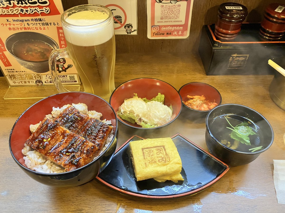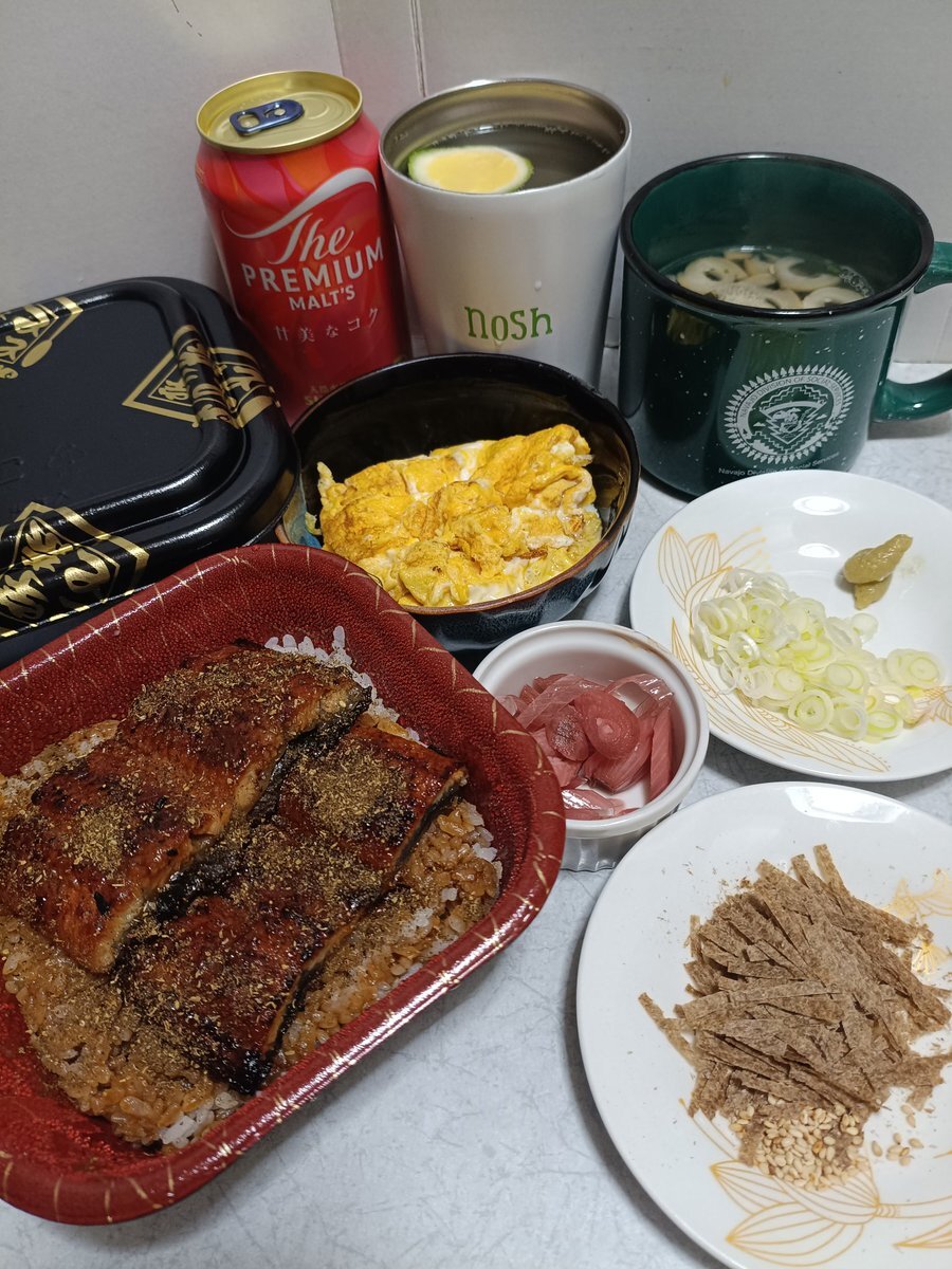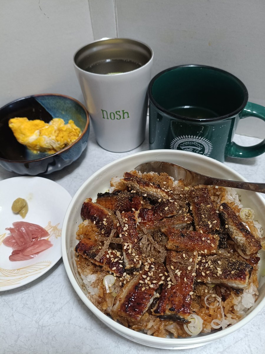 名代 #宇奈とと 八丁堀店さんのリニューアルオープンイベントでお得に購入できた、うな丼ダブル×2で一杯。スクランブルドエッグ、薬味、松茸のお吸い物を添えて。 フワっとジューシーなうなぎが美味かつ大盛りご飯でも足りないくらいでかい。 2丼目はひつまぶしにして満の腹でやす。 #日々是晩酌 pic.x.com/7Jl81Q7ekw