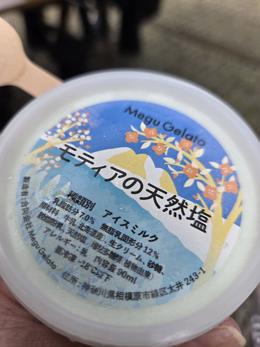 塩ジェラートは普段津久井湖の水の苑地にあるメグジェラートさん(スペルわからん)で販売されているやつで、クリーミーな甘味に意外としっかり塩が効いてて美味しかったです。 津久井湖に遊びに行ったら是非。 #宇宙交差天
