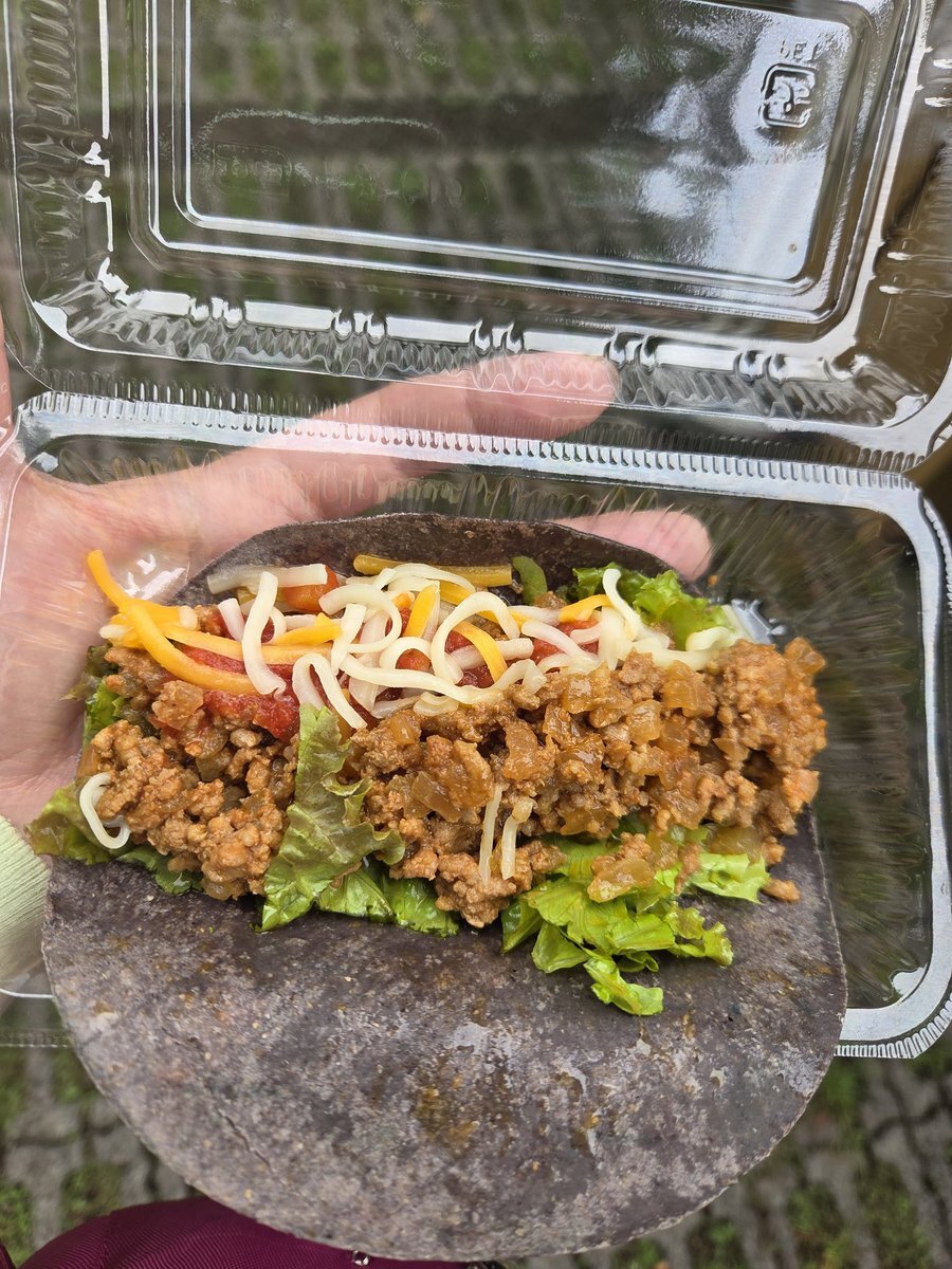 食べるもんは食べる(´・ω・) タコスの皮は青だったんですが何故か黒になってしもうた(´・ω・) #宇宙交差天 pic.x.com/0cH66xLWjR