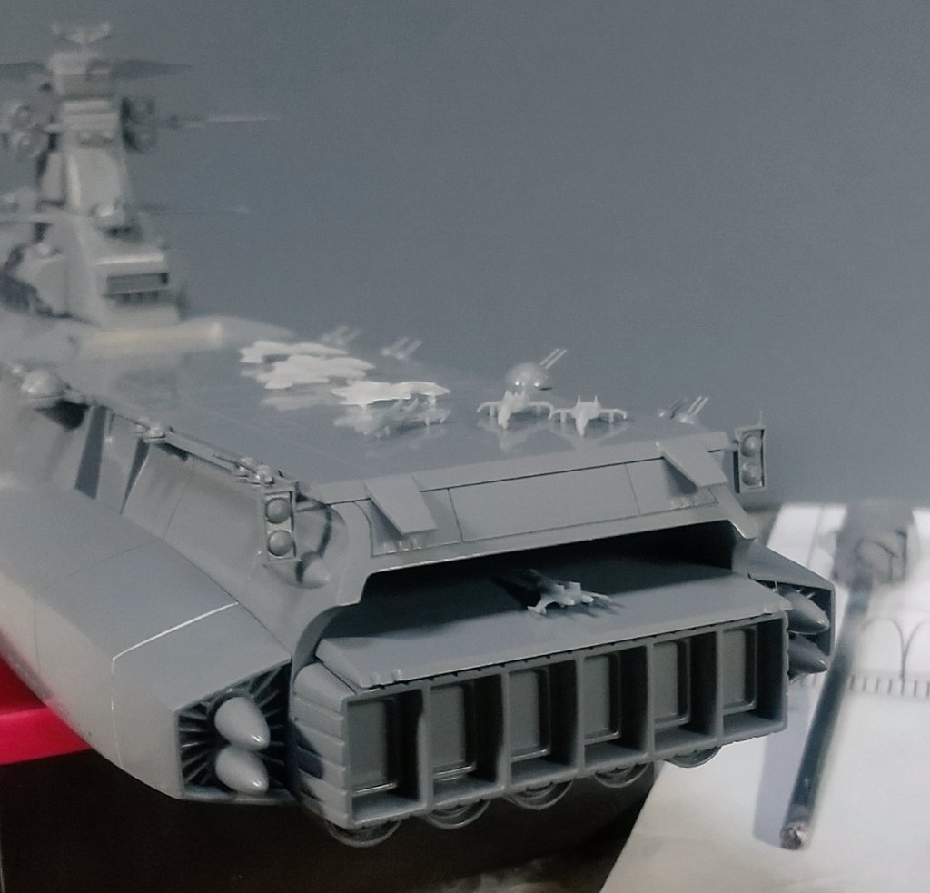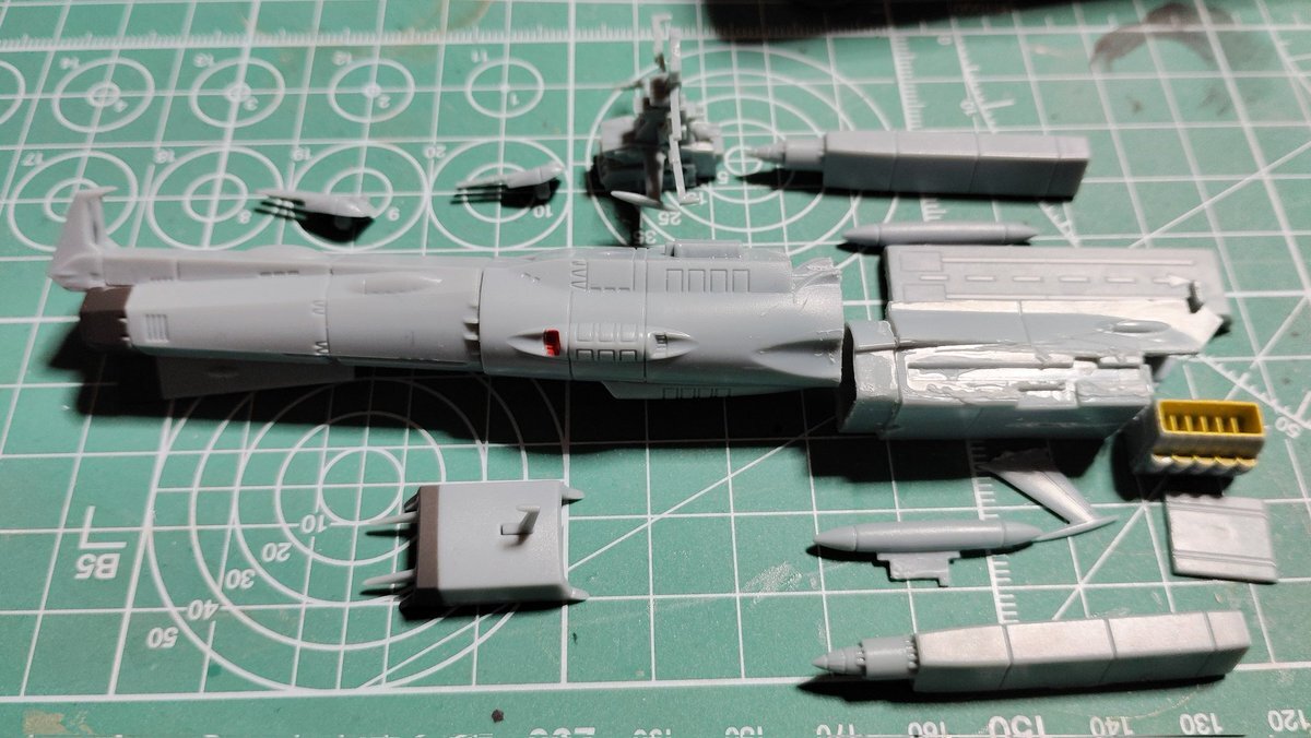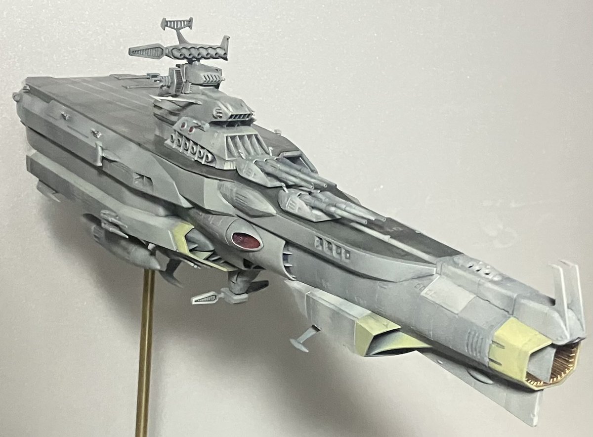 勢いで作っているヒュウガ、全部品が付きました。 デカール作業と老眼に厳しい艦載機が残っています。 #ヒュウガ #宇宙戦艦ヤマト3199 #宇宙空母 pic.x.com/EHGTycCxEM