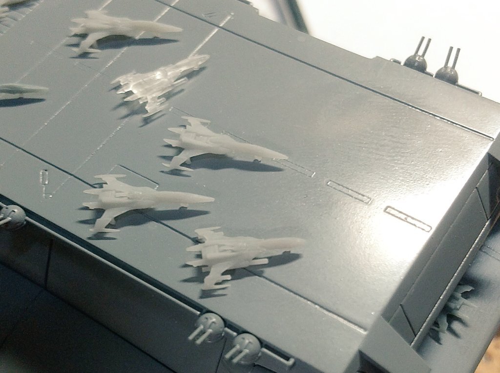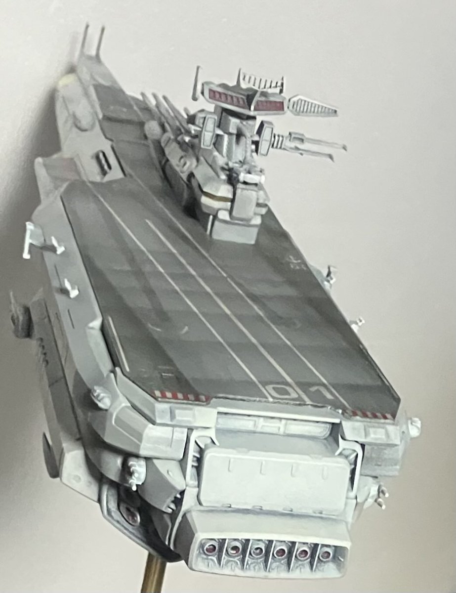 #宇宙空母 #んどぱら屋 艦尾は概ね完成ですわ🎵 コスモタイガーも単座、三座、雷撃と搭載❗️ pic.x.com/2EmKBTw0cs