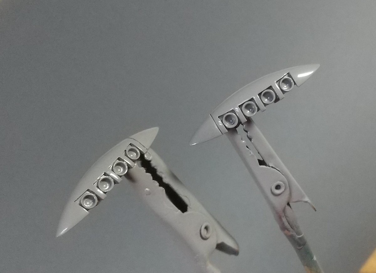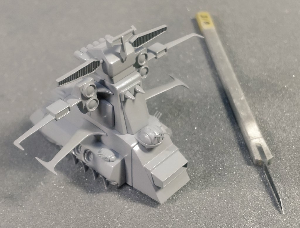 #宇宙空母 #んどぱら屋 全26パーツの艦橋、組むとこんな感じですわ🎵 比較はタガネ0.15 pic.x.com/Wbw4pAc7d4