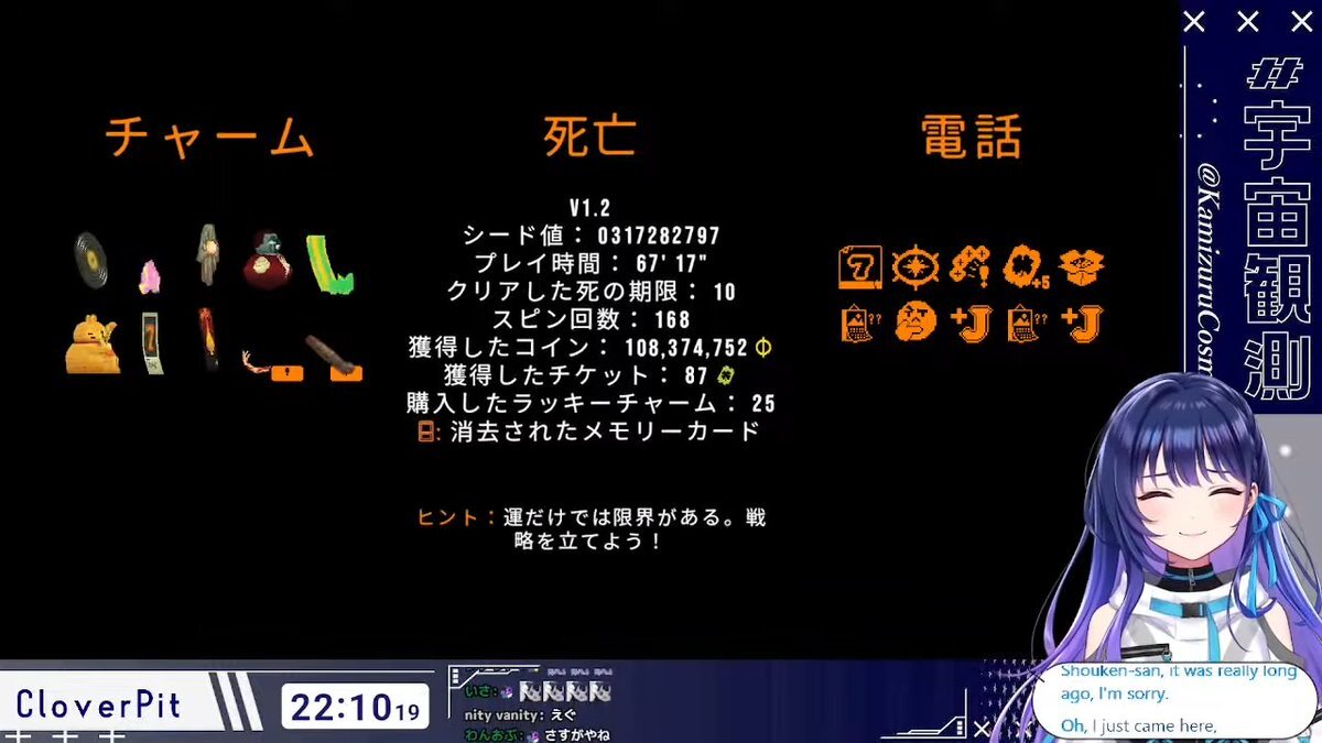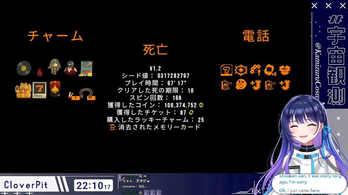 CloverPit配信、お疲れ様! 前回の配信で越えられなかった10の期限クリアおめでとう! 最後の666はほんと惜しい! ゲームの状況に合わせたセリフも、めっちゃ面白かった! 久しぶりにチクチク言葉もいっぱい… メモカも面白い効果がいっぱいあるから、次はそれも一緒に使ってみてほしい! #宇宙観測 pic.x.com/sj3mcq0Imr