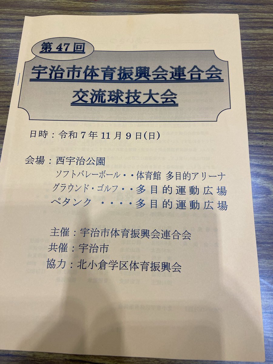 本日は宇治市体育振興会連合会の交流球技大会開会式に出席致しました。雨天候が悪かったためグラウンドでの競技が中止となり、少し残念でしたが体育競技は頑張って頂けます。#宇治市議会議員 #とりい進 #体育振興会 pic.x.com/t11aHFM951