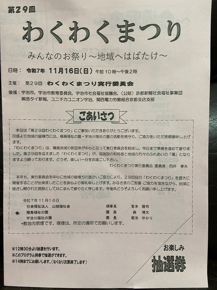 本日は宇治市槇島地域の「第29回わくわくまつり」が開催されまして、副議長公務として市議会代表の祝辞を述べさせて頂きました。毎年多くの方々がご参加され、今年も大盛況で催されてました。#とりい進 #宇治市議会議員 pic.x.com/7wZbYLHmRo