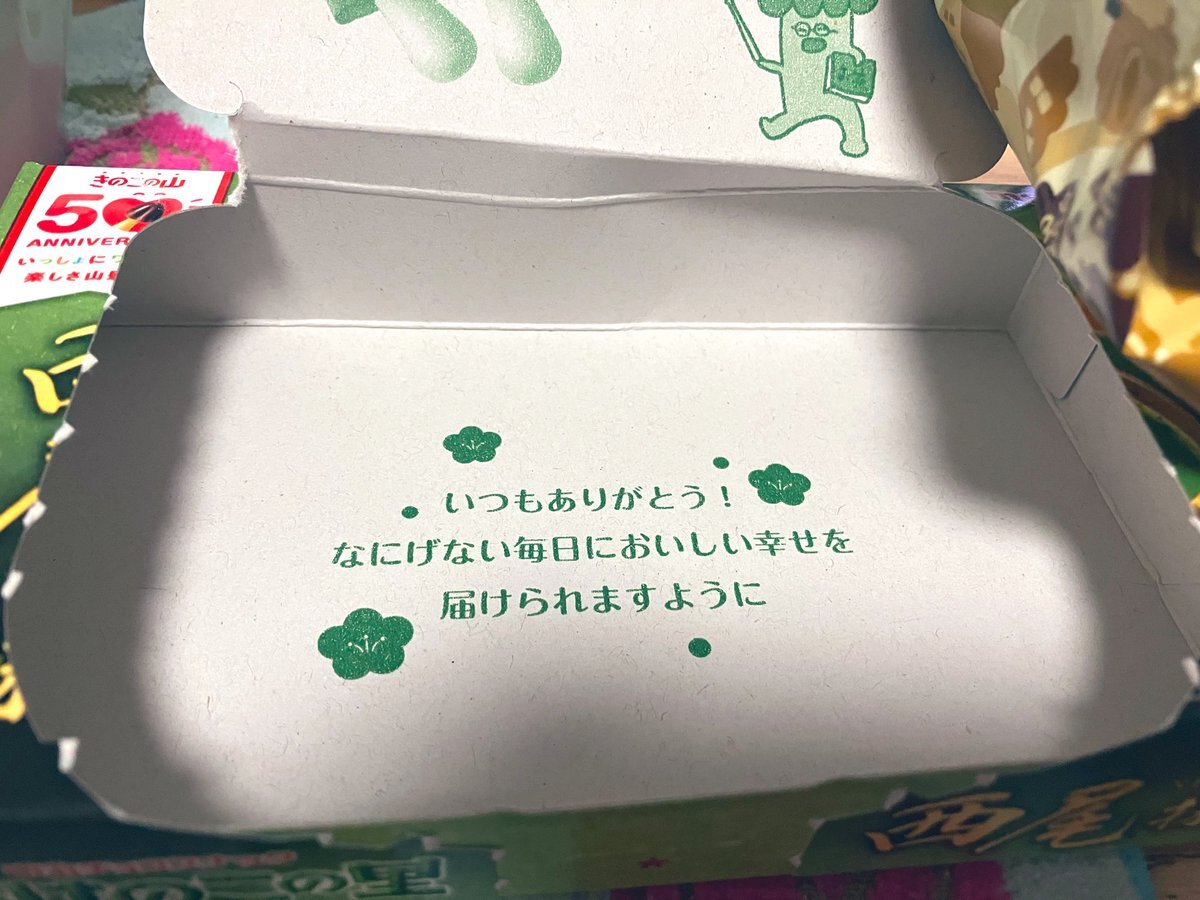 1箱🍵64グラム🍄365キロカロリー⛰️ しっかり抹茶の苦味があってしかも甘い‼️ あっという間に完食です✨️😋たぶんタケノコには手を出さないと思います🎋 #きのこの山 #宇治抹茶 #準チョコレート菓子 pic.x.com/pwzRgrA7T0