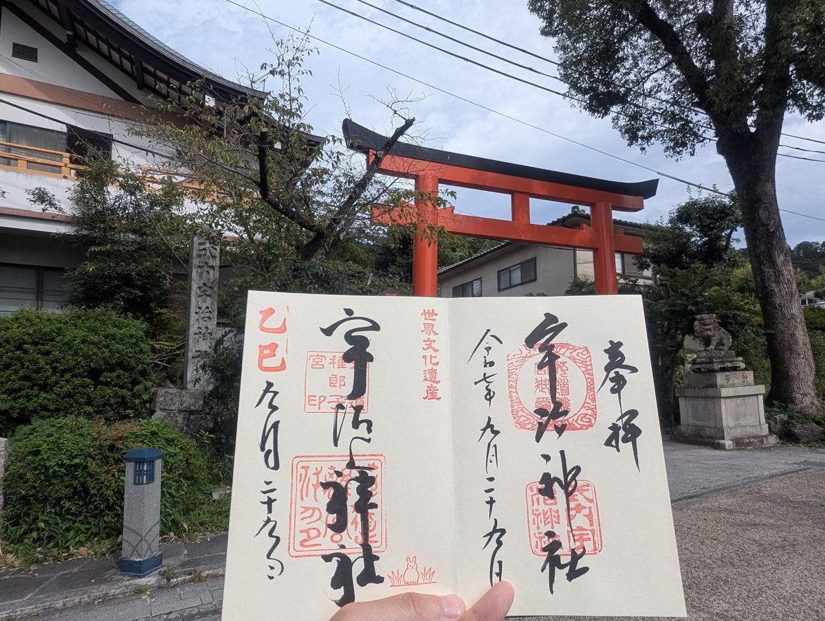 10/4の最後は宇治神社でした。 通常の御朱印をいただきました。 朝からの雨で心も折れ、境内の写真も撮ってません(^^; #御朱印 #宇治神社 #京都 pic.x.com/Bk85GWNqQJ