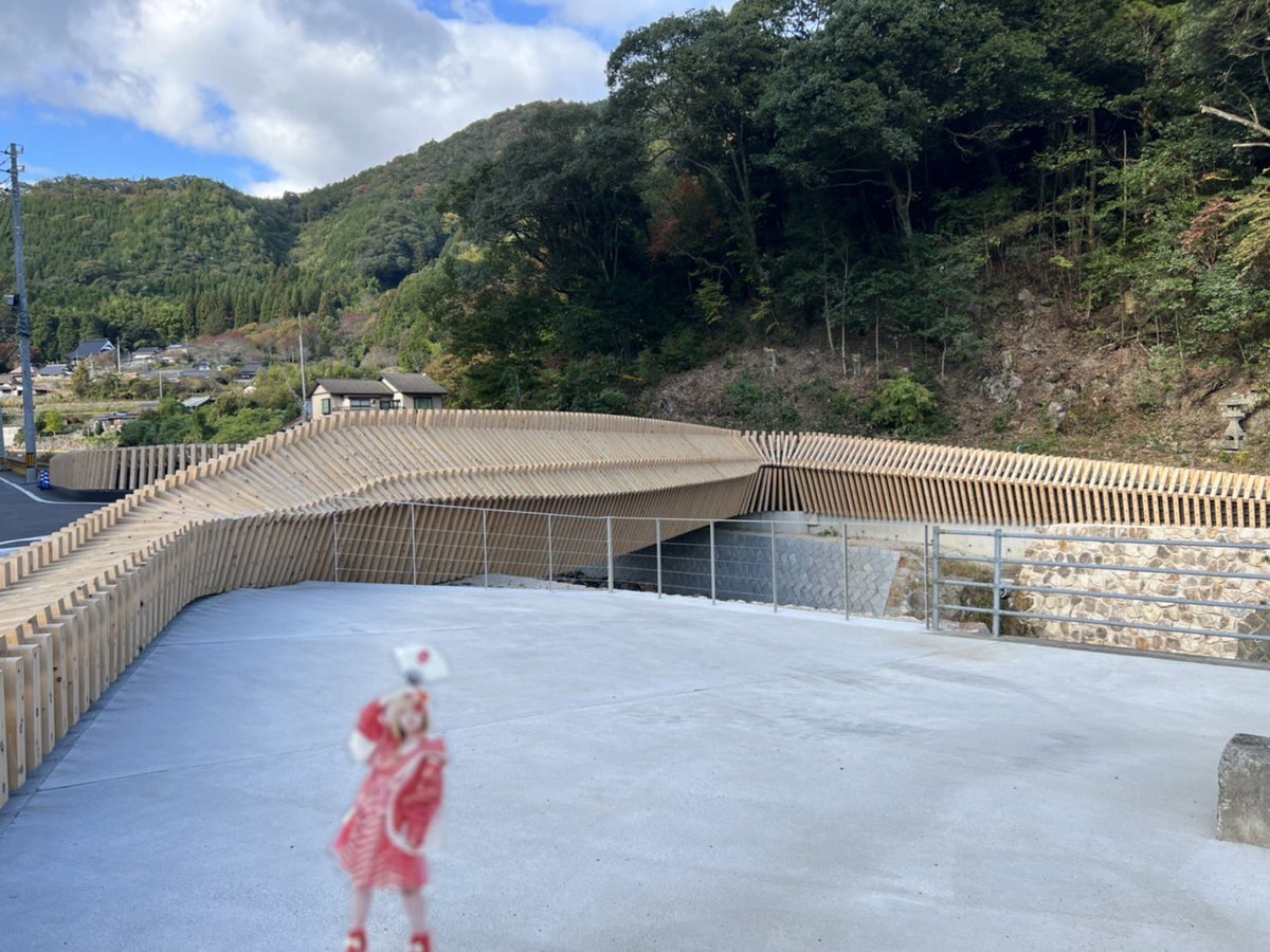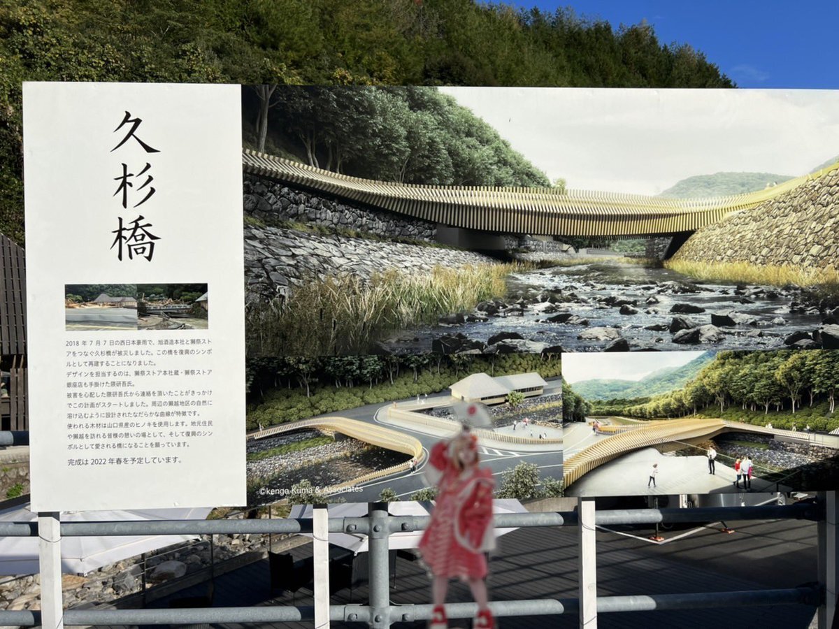 #藤崎ふみの山口さんぽ🍊403 #山口県の伝道師 #宇部ふるさと大使 岩国市旭酒造本社と獺祭ストアをつなぐ【久杉橋】は2018年7月の西日本豪雨で被災しましたが復興のシンボルとして山口県産ヒノキを使用したなだらかな曲線が特徴の素敵なデザインのものを再建し今年7月に完成しました🍶とても素敵です✨ pic.x.com/fYaLATWZmq