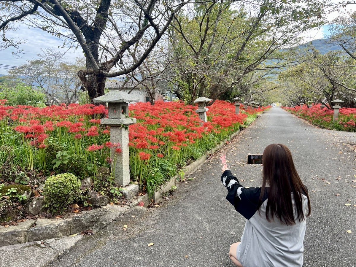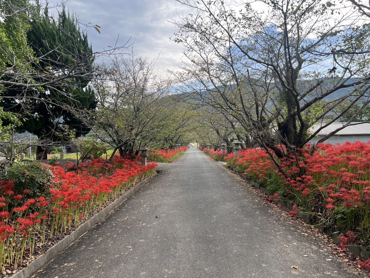 #藤崎ふみの山口さんぽ🍊463 #山口県の伝道師 #宇部ふるさと大使 昨年帰省時にわたしも行った山口市小鯖[鰐鳴八幡宮]が10月頭に参道に咲く彼岸花の見頃を迎えたので家族が撮影に行ってくれました📷 周りは田んぼでとても風情のある景色の中に赤い彼岸花が両側に整列している姿は本当に見事です⛩️ pic.x.com/mXbtUc3H1o