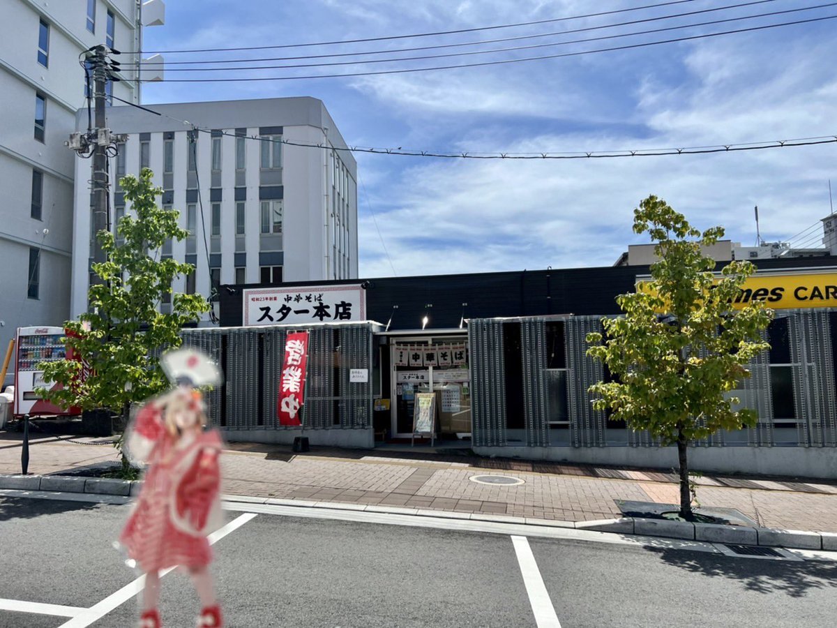 #藤崎ふみの山口さんぽ🍊400 #山口県の伝道師 #宇部ふるさと大使 周南市徳山駅ロータリーの[スター本店]は昭和23年創業老舗のラーメン店,徳山ブラックと呼ばれるスープは西日本にしては珍しい濃い醤油味で生卵が入った物が人気です。どうやら周南市と防府市を境に西が豚骨の文化になっているようです pic.x.com/lEMBqK50Sg