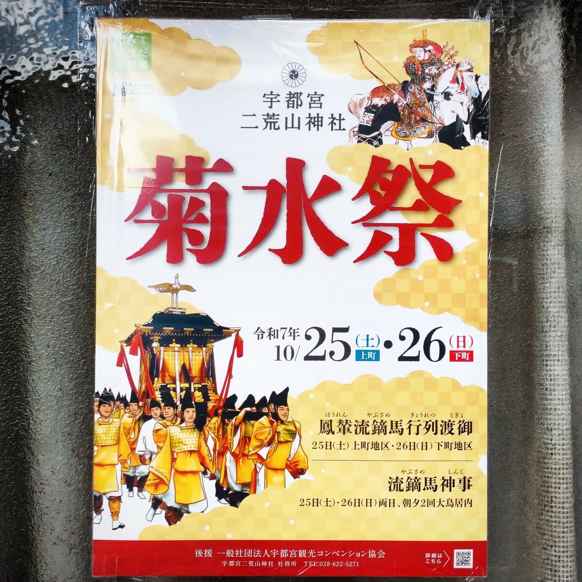 【宇都宮二荒山神社】 『菊水祭』 令和7年 10月25日(土)、26日(日) 鳳輦流鏑馬行列渡御(25日:上町地区、26日:下町地区)と流鏑馬神事(大鳥居内)‼️ 先ほど参拝して今年のポスターいただいてきました‼️✨⛩️🌿 #下野國一之宮 #宇都宮二荒山神社 #菊水祭 #鳳輦流鏑馬行列渡御 #鳳輦 #流鏑馬神事 pic.x.com/WyTdBWhQ2u