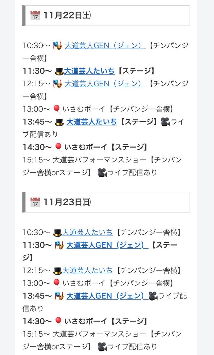 utunomiyazoo-daidougei.com 11月22日(土)、23日(日)宇都宮動物園内の大道芸イベントに出演します🎈 小さい頃からお世話になっているパフォーマーさんからお誘いいただき出演が決まりました。もしご都合が合えば是非観に来てください。 #大道芸 #宇都宮動物園 #いさむボーイ pic.x.com/XFvQb1wsKI