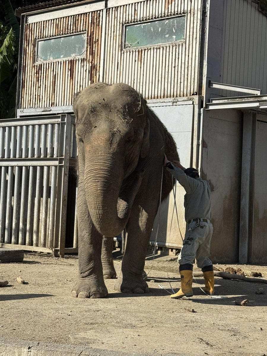 アニマルの日といえば 宮子さんの身体検査 体重は大きく変化ない感じでした。 爪のお手入れした後、オイルを塗って、やっぱりもう冬なんですよね 🐘2025/11/20 #宇都宮動物園 #アジアゾウ #宮子 pic.x.com/yjAjX0gcDc