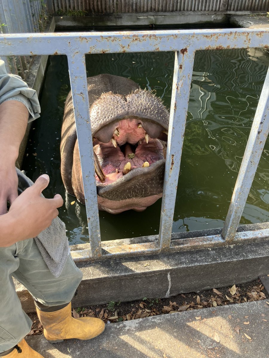 カバのハナちゃん🦛 カバさんのお髭は思ってたよりも 柔らかくて 皮膚もモチモチしていた💓 散々触らせてもらいましたが 三度チャレンジ😆 3回目はハナちゃん、しゃーないなーって感じでしたが💦 ありがとね😊 #カバ #ハナ #宇都宮動物園 pic.x.com/gXHnEXvtFY