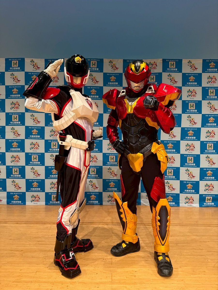 本日お披露目になった守口警察署公式ヒーロー❗️ その名も、 「マモライザー」👮‍♂️✨ 正義感が強く、市民を守るためならどんな危険にも立ち向かう🦾 武器は「ジャスティスバトン」⚔️ これからマモルヒーローと一緒に守口市の平和を守っていくで🕊️⬆️ 熱い応援よろしくやで👍 #マモライザー #守口警察署 pic.x.com/VOSGf5GzFx