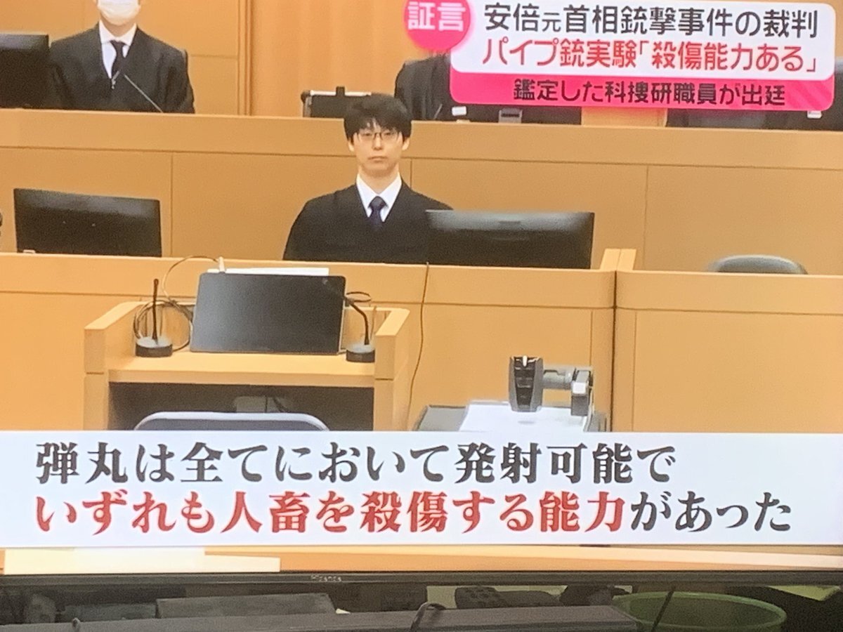 山上被告第6回公判 奈良県警科捜研職員が証言 「山上の自宅から押収したパイプ銃で発射実験したところ殺傷能力があった」と証言し、ベニヤ板にに穴が空いた映像を見せた。 が、私の予測通り90m先のコンクリート壁にめり込むかどうかの実験はしていないことが判明。殆どの一般国民は簡単に洗脳される🫩