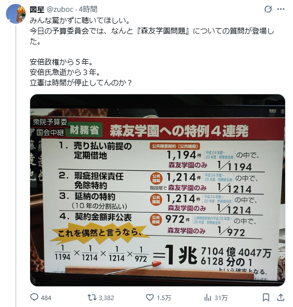 「いつまで森友やってんだ⁉️」 のご期待に応えて、 真相解明するまで絶対にやります‼️ 森友のみの特例4連発💥 1等宝くじが8万回当たるほど 天文学的な確率の特例を なぜ「森友学園のみ」が受けたのか? #川内ひろし @kawauchihiroshi youtube.com/shorts/YSEvj1C…