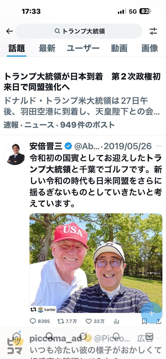 トレンドからトランプ大統領をクリックしたら安倍さんとトランプさんの満面の笑みのツイートが最初に来るのはズルイわ😭😭😭 #トランプ大統領 #安倍晋三総理 pic.x.com/LGhNrVDHeo