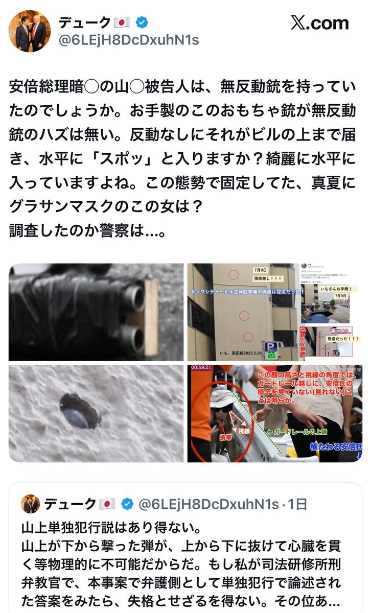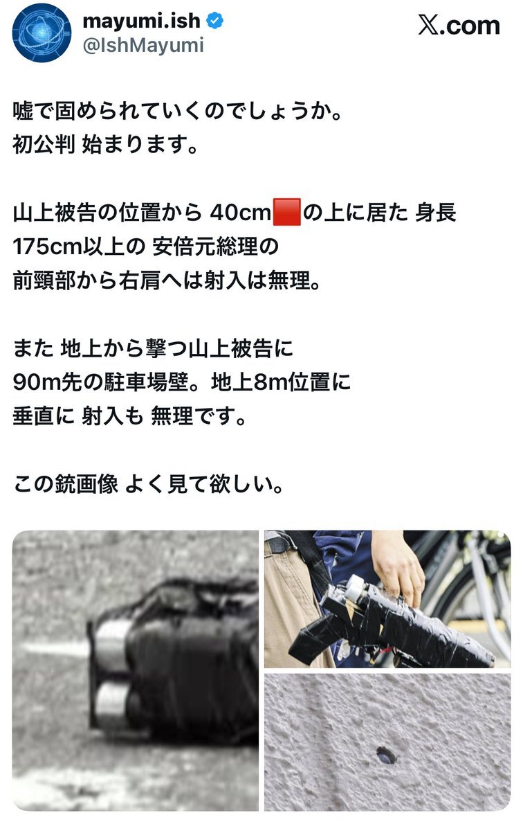返信先:@kohyu19521安倍総理暗殺裁判は銃の威力実証実験が必須ではないか? 検察・弁護側が避けるのは八百長の証。 闇の勢力にビビって、山上容疑者になさり付け、更に煙たい団体を潰す絶好のチャンスととらえ、全体が動いているとしか思えない。 遅すぎる裁判で真実を! #安倍総理暗殺 #山上裁判 #威力実験