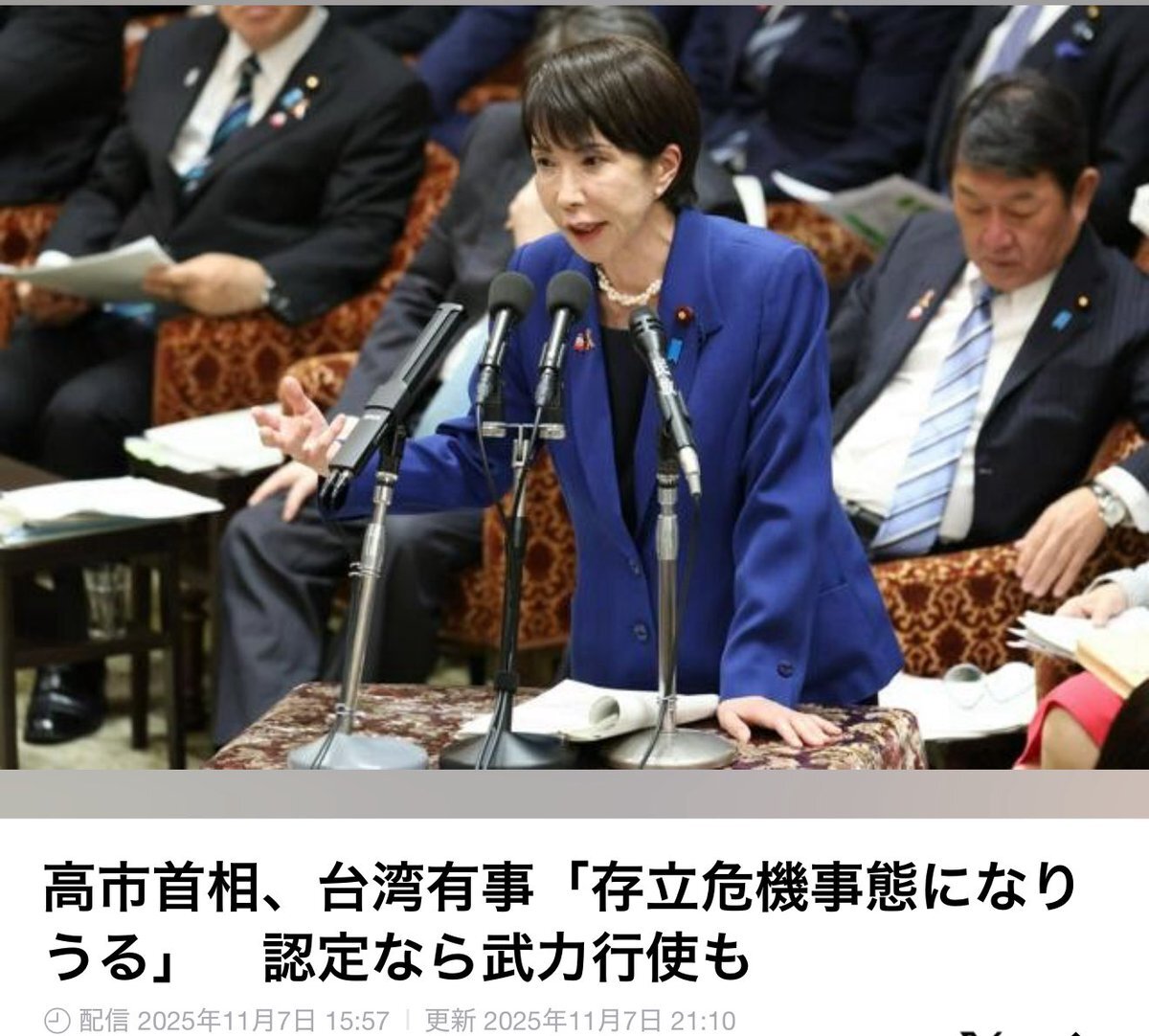 ● 高市首相と台湾有事 存立危機を軽く語るな 〈#高市早苗 首相が中国による台湾への武力侵攻が起きた際、安全保障関連法に基づく #存立危機事態 に認定し、#集団的自衛権 を行使する可能性に言及した〉 tokyo-np.co.jp/article/448387