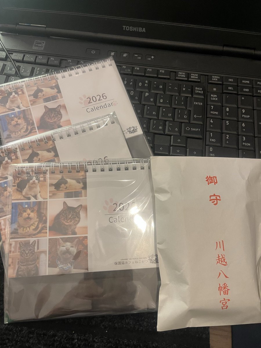 昨日フォロワーの @DGnRBryxR2M09ak さんから2026ねこかつチャリテティー卓上カレンダーと来月出産予定日の長女に安産御守りもいただきました✨ 私に出来ることは先ず自分たちの愛犬🐶を愛情と責任を持って接する事です✨ そして願わくば不幸な犬猫が1匹でも減る事です☘️
