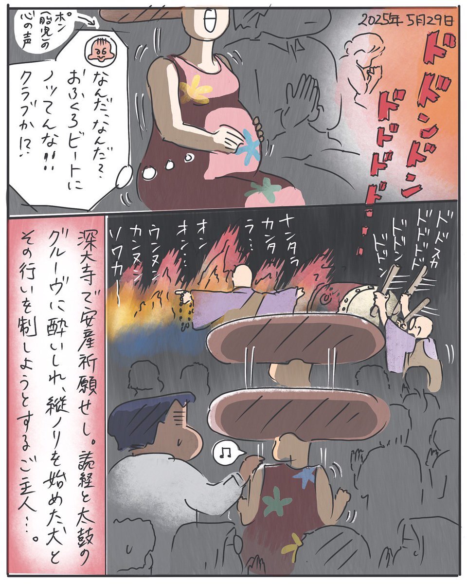 炎と読経のセッションにトランスしちゃったあ🐶❤️🔥 #イラスト #赤ちゃん #育児漫画 #深大寺 #安産祈願 #イラスト好きな人と繋がりたい #絵描きさんと繋がりたい pic.x.com/YAr0aJWAuH