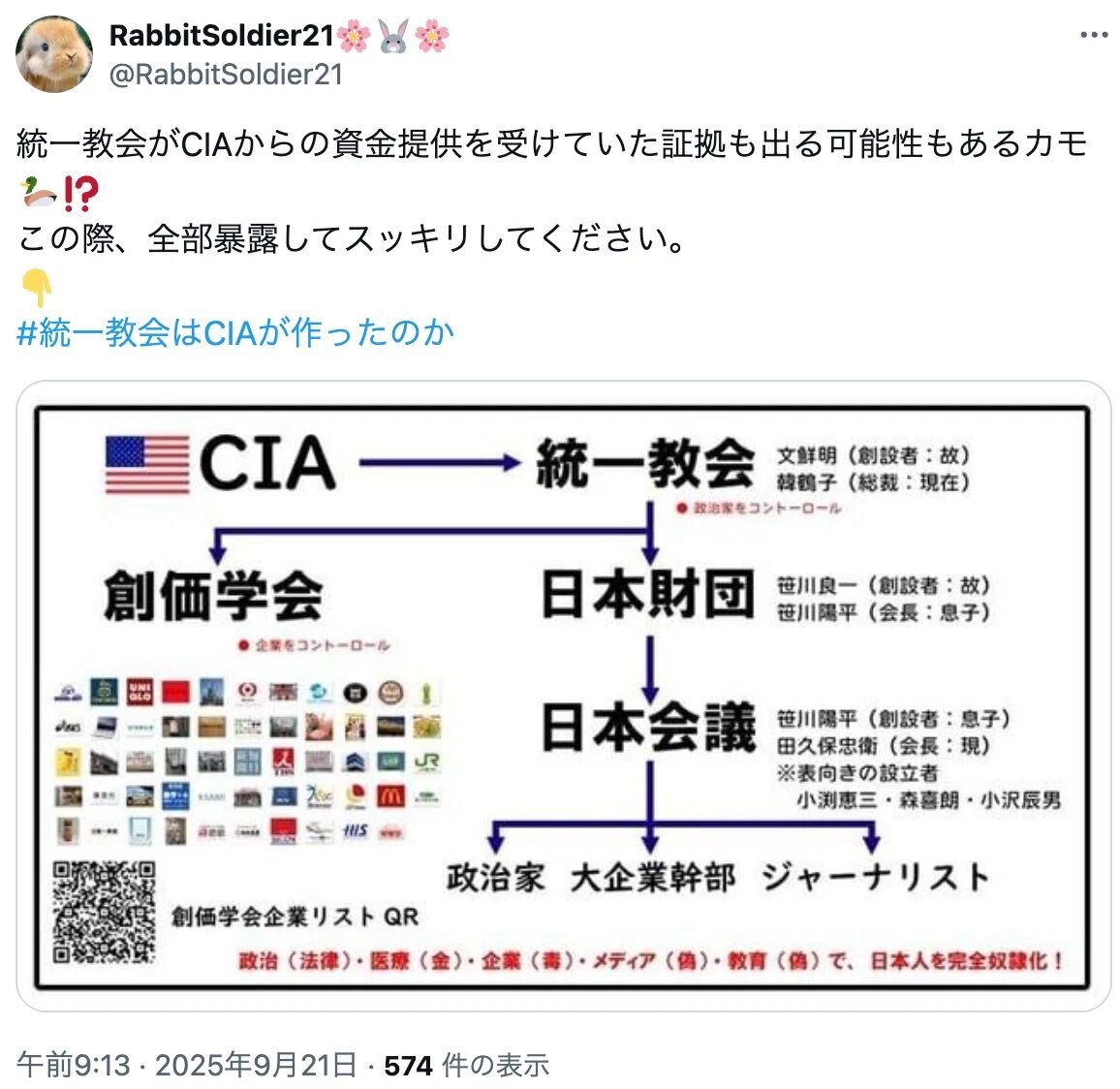 返信先:@RabbitSoldier211CIA、統一教会、創価学会、日本財団、 日本会議、政治家、大企業幹部、ジャーナリスト…🤔 政治(法律)、医療(金)、企業(毒)、 メディア(偽)、教育(偽)…🤔 #日本人#完全 #奴隷化 pic.x.com/iVFhDinjFt x.com/RabbitSoldier2…