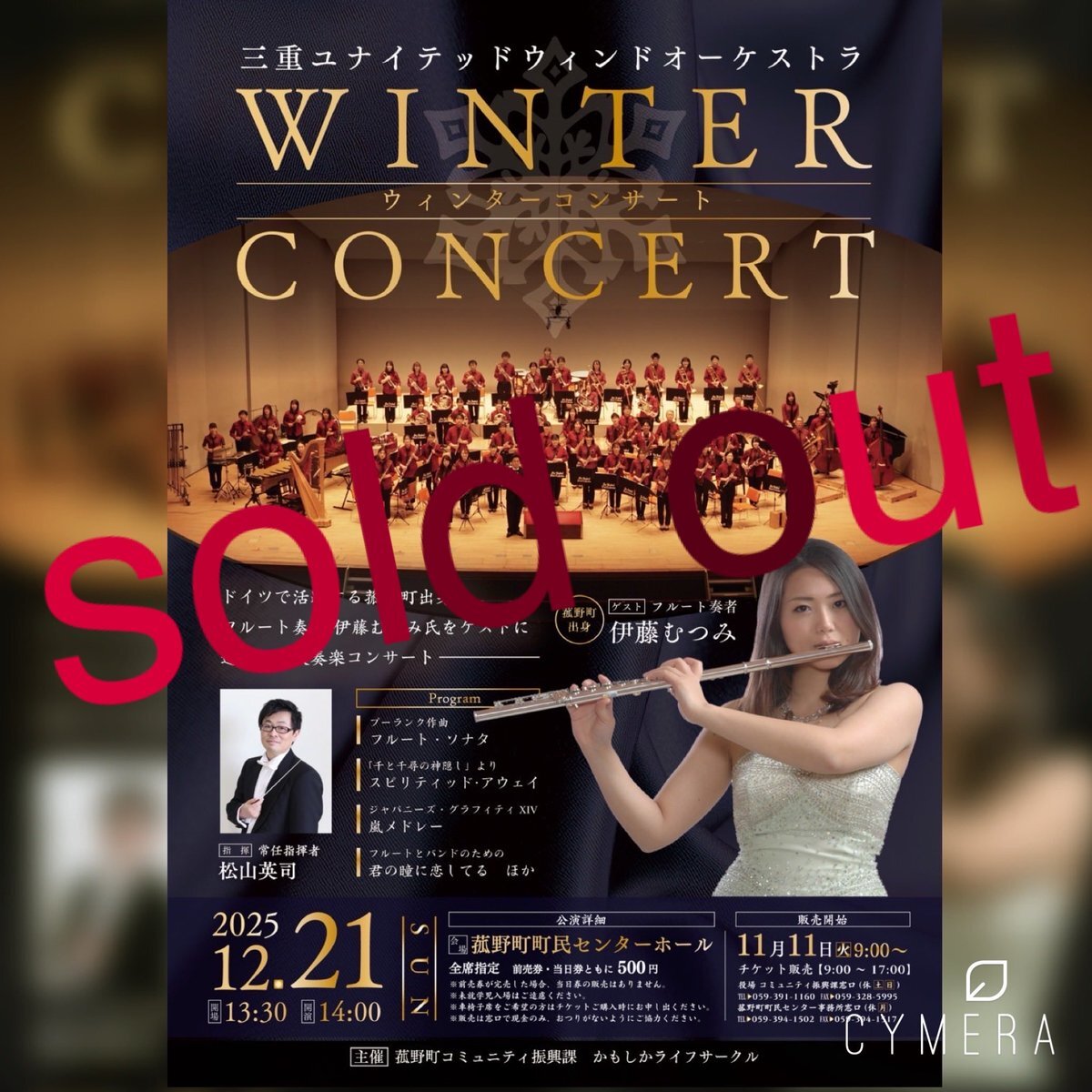 ウィンターコンサートのチケットは 発売日約3時間で完売いたしました! ご購入いただいた皆様本当にありがとうございました!ご来場心よりお待ちしております☺️ #三重ユナイテッド #演奏会 #ウィンターコンサート #完売 #完売御礼 pic.x.com/vhv5GDFjvW