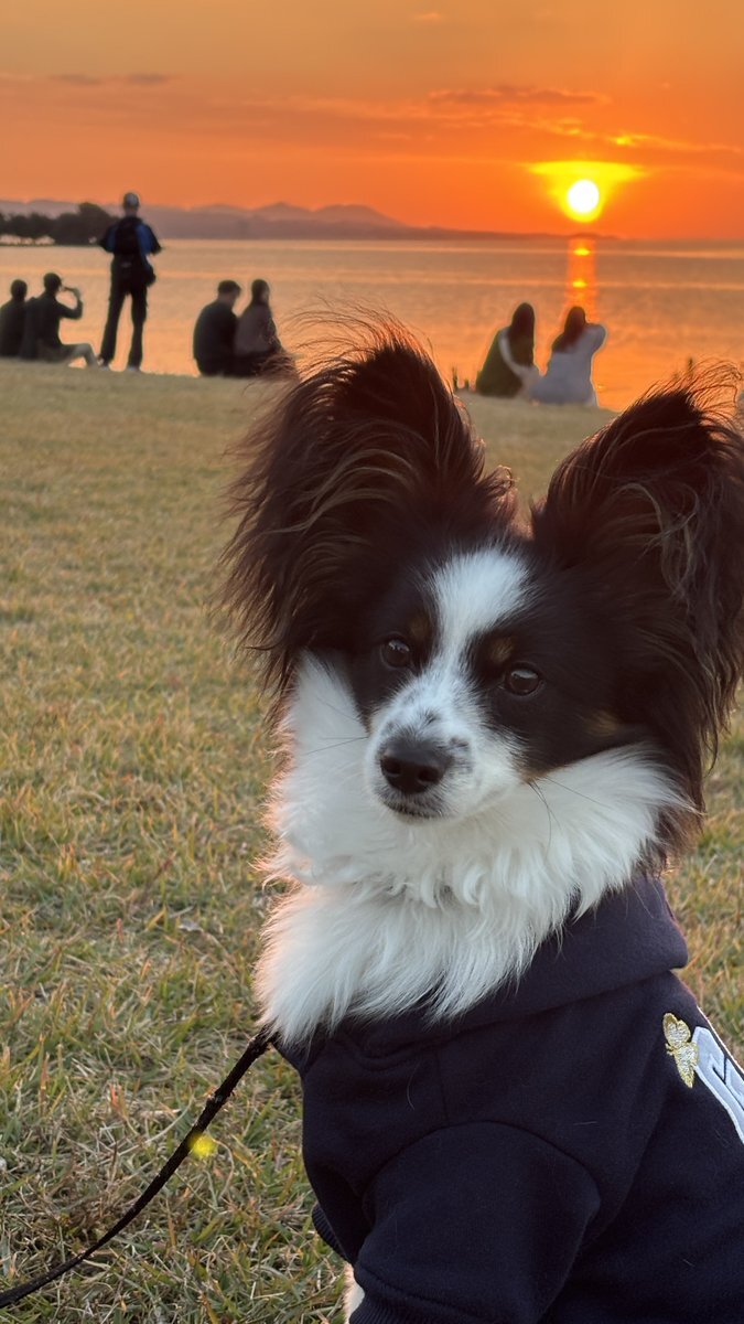 ノマと地元島根の宍道湖の夕日 めちゃくちゃ良い里帰りが出来た! ありがとうノマ🐾໊ #パピヨン #宍道湖の夕日 #島根 pic.x.com/K2pF59cdIb
