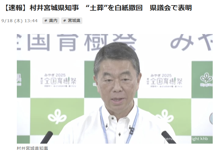 イスラム土葬墓地、白紙撤回きました!! 【速報】村井宮城県知事 “土葬”を白紙撤回 県議会で表明 | khb東日本放送 khb-tv.co.jp/news/16035821 x.com/shigeyuki696/s…