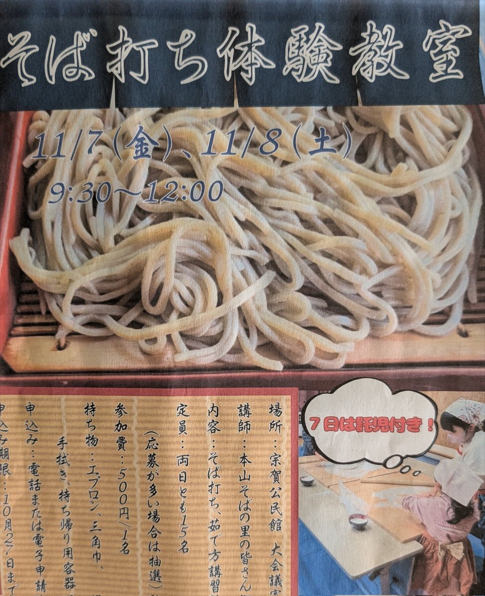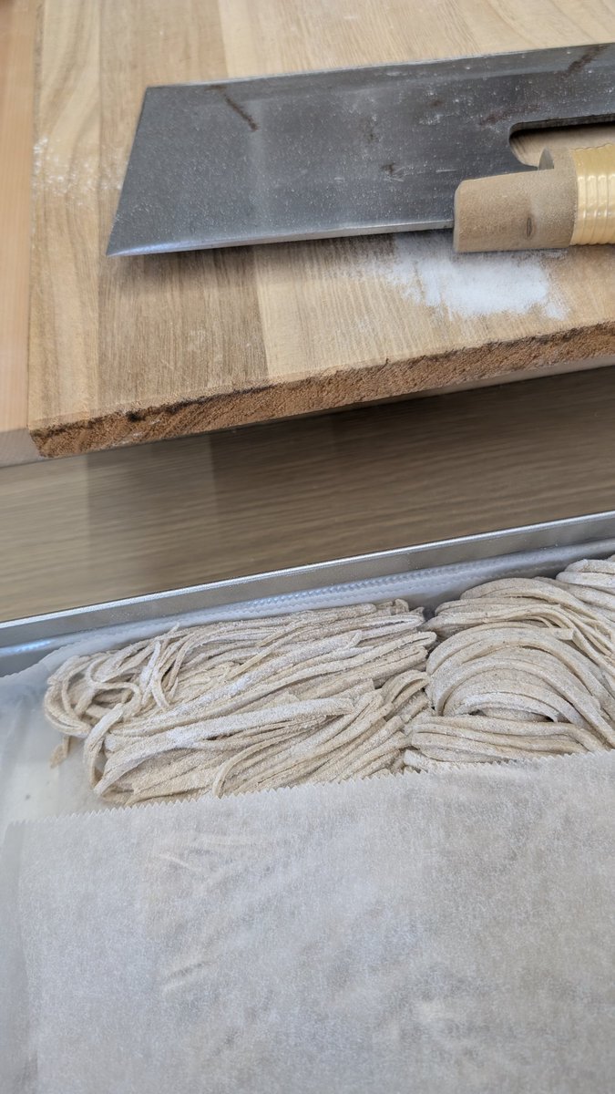 今日明日の2日間は、#宗賀公民館#そば打ち体験教室 です。今日は1人欠席があったので、わたしも合間に1枚打たせてもらいました。明日は超満席です。 明日のわたしはたぶん腕、筋肉痛かも。こねは腰にきますね笑 教訓 そば打ちは体力だ pic.x.com/Cpr8nqLDFT