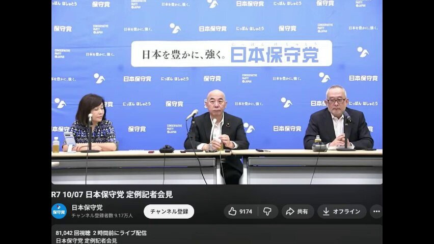 #日本保守党 #定例記者会見 ・減税日本との友党関係を解消 結党時は政治団体だった保守党も、国政政党になったので地域政党とは協力関係とすることが適切と判断 ・党大会11月開催決定 解散総選挙があっても中止は無し 5000人の収容人数 党員向けのライブ配信も予定 youtube.com/watch?v=6Q2d0Y…