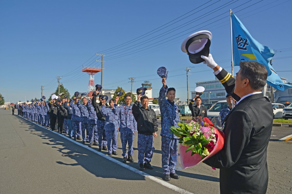 #定年退官 💐】 先日、定年を迎えた隊員の退官行事が行われました。 共に汗を流した仲間達に見送られ、とても温かな時間となりました。 37年間の長きにわたり駆け抜けた自衛隊人生も終わり、新たに人生の第二幕が上がろうとしています。 これまで本当にお疲れ様でした✨ #海上自衛隊 #4空群 pic.x.com/3Gr6ME1jOD