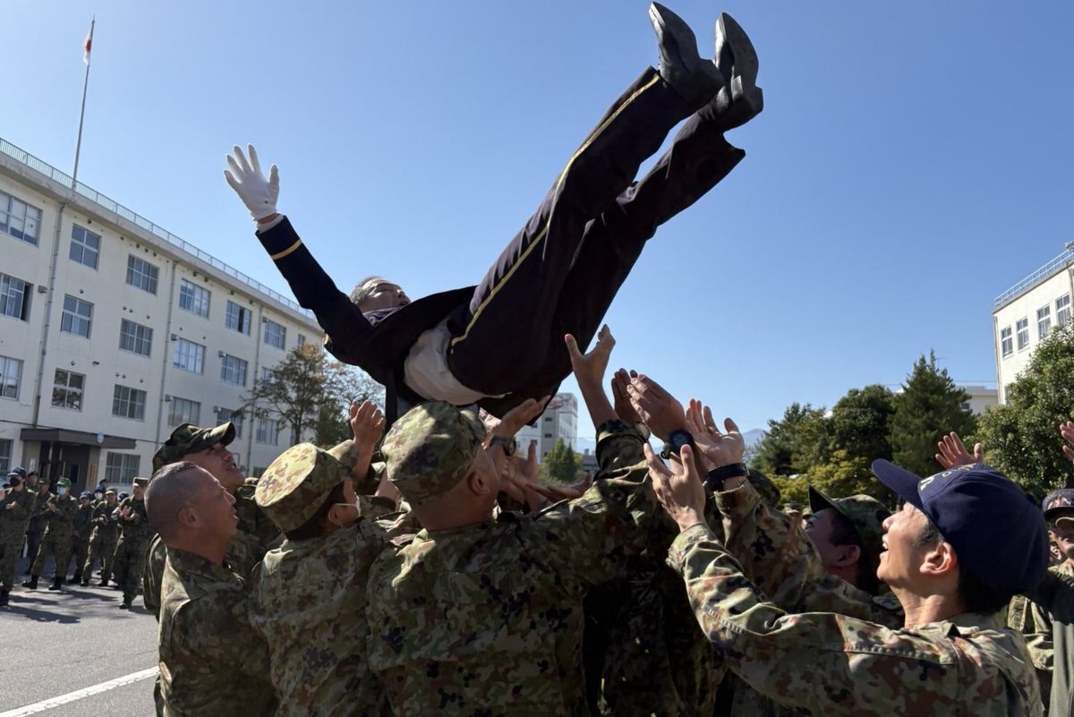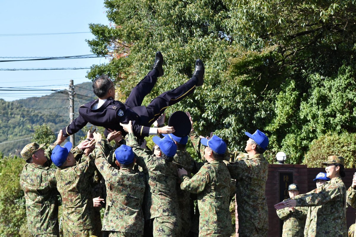 #松本駐屯地 では西沢准尉の定年退官行事が行われました。 第1中隊迫撃砲小隊長をはじめ、本部管理中隊で補給小隊長や人事陸曹として勤務するなど、隊務運営に多大な貢献をされました。 また数多くの災害派遣に従事され民生の安定に寄与されました。 永年の勤務お疲れ様でした! #定年退官 #胴上げ pic.x.com/nzdPHFDKCB