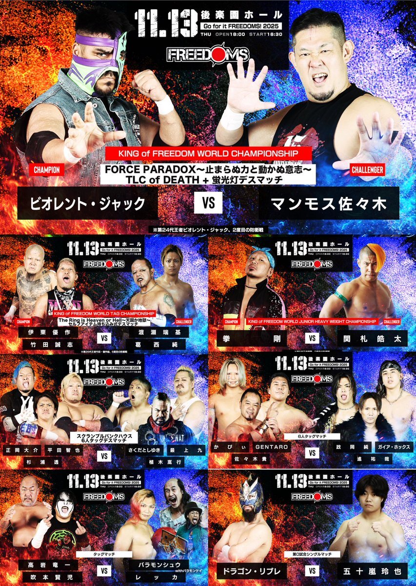 いよいよ明日はプロレスリングFREEDOMS後楽園大会!! Ultra violenceモード発動で狂いじかけのオレっちTシャツも超久々の再生産! 買い逃してた方や着まくってテロテロになってしまった方はこの機会に是非! #宜しくお願い致します pic.x.com/O7MNyEL38a x.com/crazymonkey090…