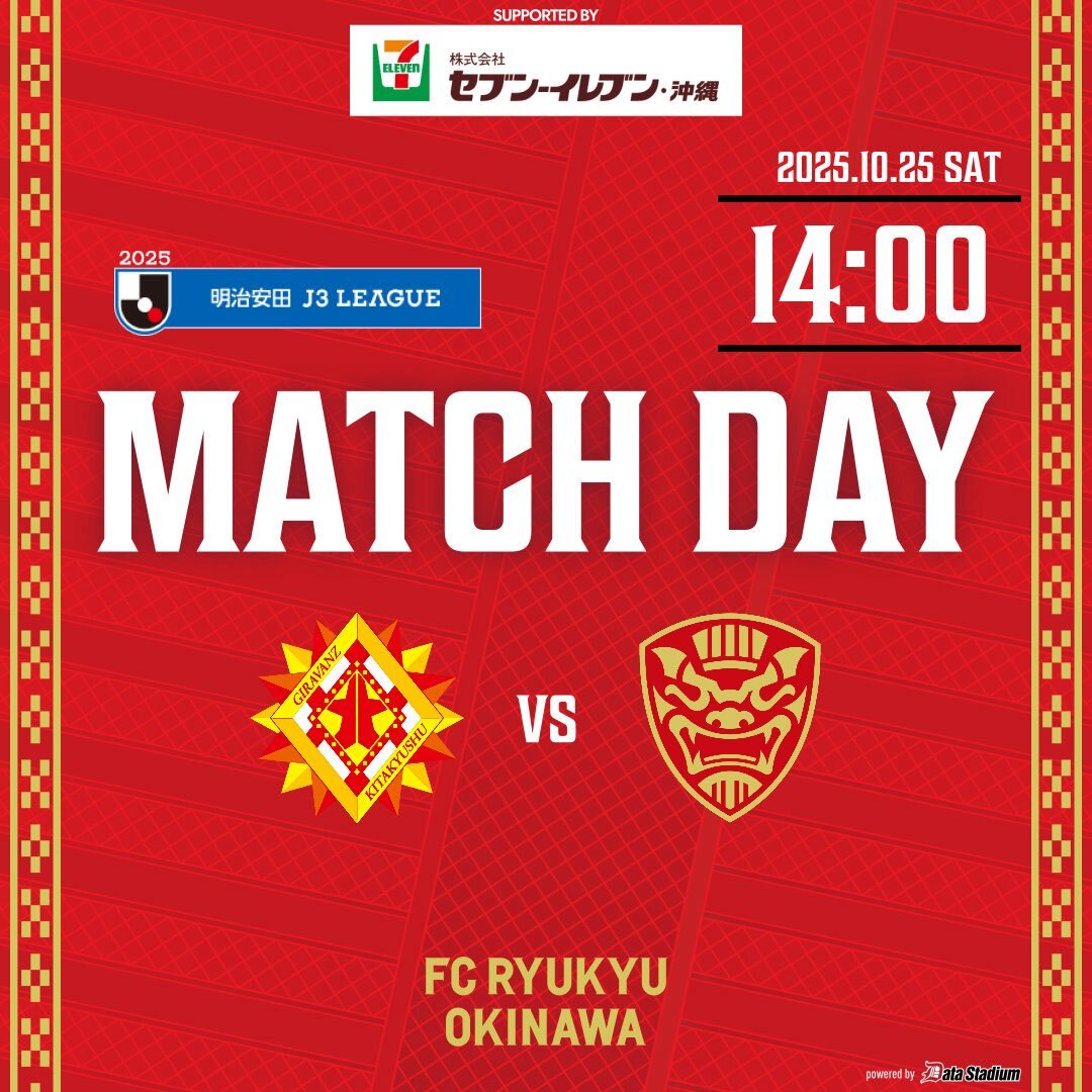 🔥𝗠𝗔𝗧𝗖𝗛 𝗗𝗔𝗬🔥 🏆明治安田J3リーグ 第33節 🆚#ギラヴァンツ北九州 🗓10/25 14:00 kickoff 🏟#ミクスタ 📱最高のプレーに!#FCRコイン を送ろう ▶ fcr.ryukyu 📺試合を見るなら #DAZN ▶ prf.hn/click/camref:1… #FC琉球