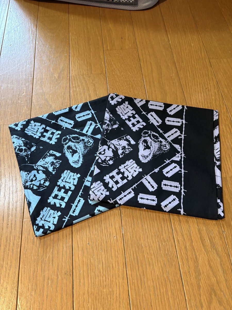 こんにちは☔️ クレイジーファクトリーです🏭🐵 【グッズ情報】 10月25日(土)お昼12時🕛〜販売開始! 『新登場』 ⭐︎狂猿バンダナ(薄紫&ブルー)2枚セット 3000円 ⚠️写真ではホワイトに見えますが薄紫となります⚠️ ⭐︎葛西純 3D フェイスステッカー2枚セッ ト 3000円 続く↩️