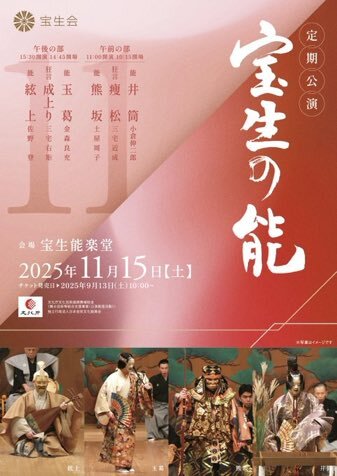 \本日の催しはこちら/ 10:00より、島村明宏師社中による発表会【島村同門会 霜月の会】が開催されます。能「通小町」のほか、舞囃子、仕舞、独鼓、素謡が上演されます✨入場無料です。お気軽にお立ち寄りください。 #能楽 # #宝生流 pic.x.com/ZyFaIsDeca