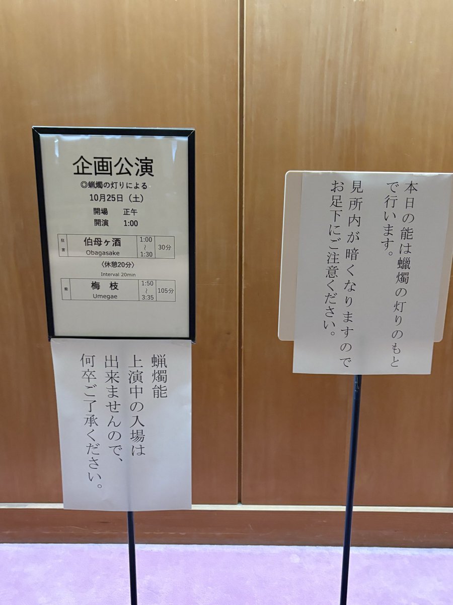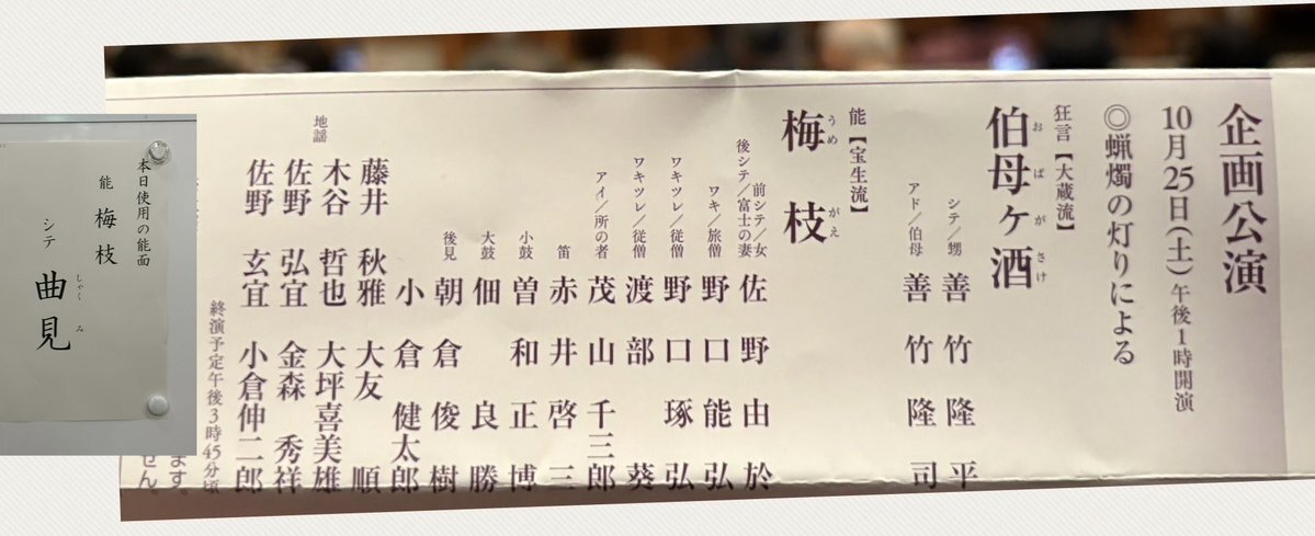 10/25 国立能楽堂 蝋燭能 狂言 伯母ヶ酒 能 梅枝 仄暗い蝋燭の灯りの中で 夢幻能の世界が広がる! 夢うつつってこんな感じなのかも…ちょっと寝てしまった 宝生流、佐野由於様、曲見の能面が素晴らしい #国立能楽堂企画公演 #宝生流 #佐野由於 pic.x.com/ftujOeEeuN