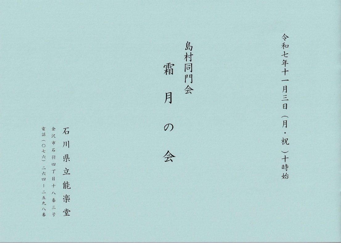 🔸社中会のご案内🔸 島村同門会 霜月の会 11月3日(月・祝)10:00開演 島村明宏師社中による発表会です。能「通小町」のほか、舞囃子、仕舞、素謡、独鼓が上演されます。入場無料です。お気軽にお立ち寄りください。 詳しくは→noh-theater.jp/schedule/20251… #能楽 # #宝生流 pic.x.com/ZGaWPFPrTm