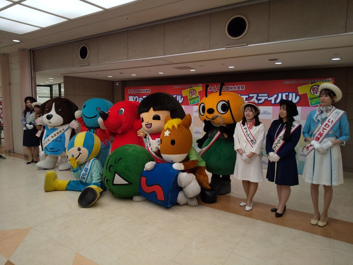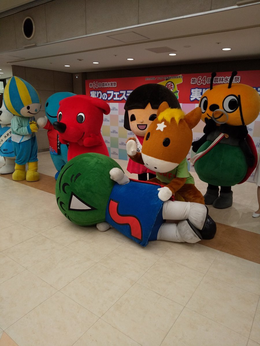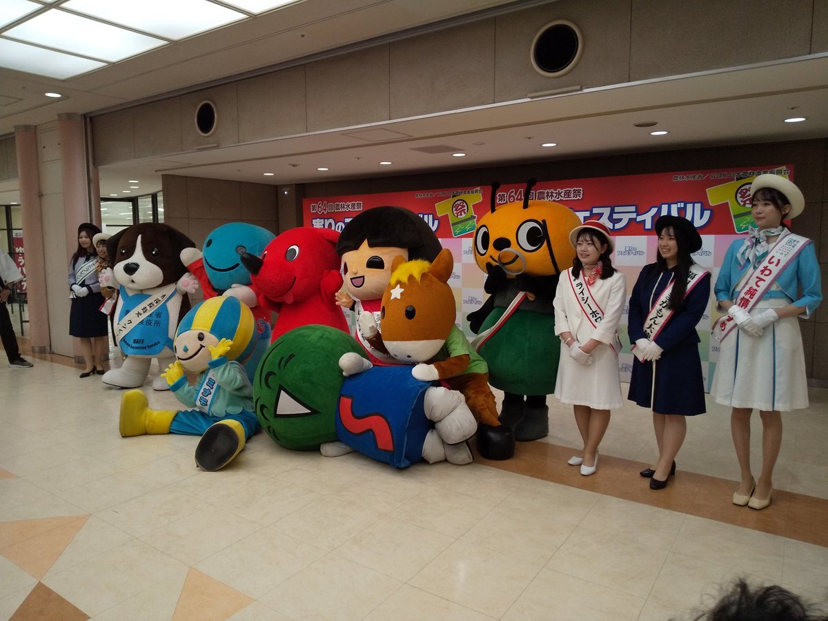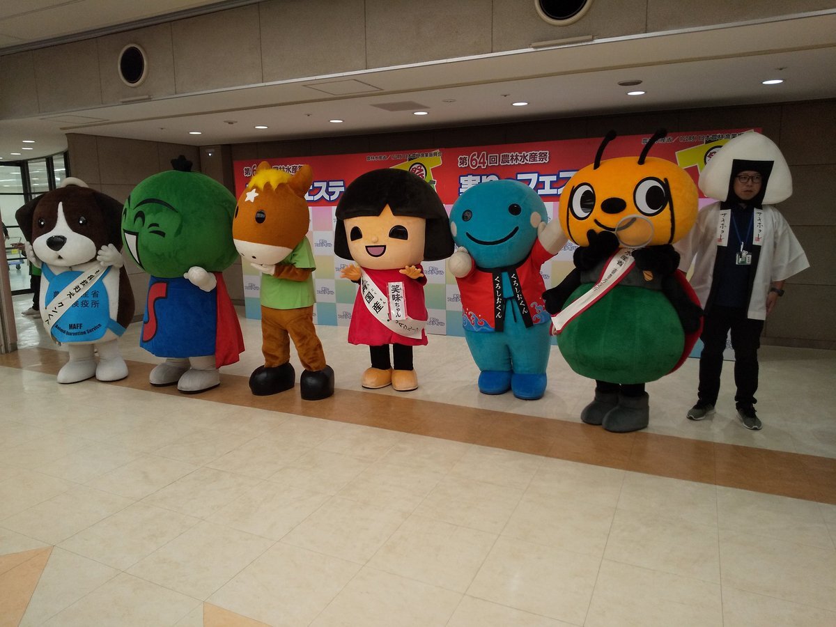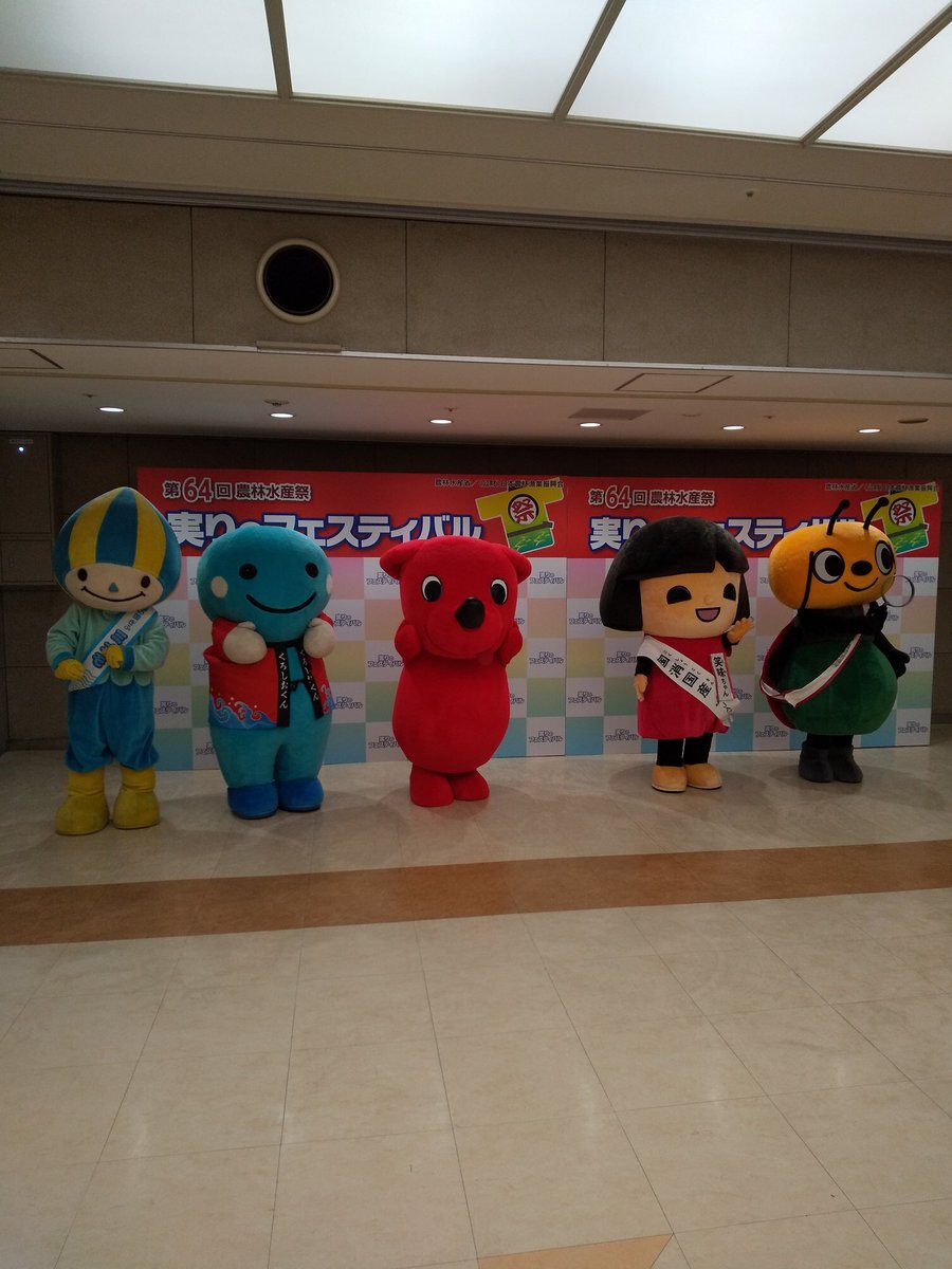 #実りのフェスティバル 弐日目 其ノ拾 です キャラクターさんと食の大使の方々です 皆様有り難うございましたm(__)m #サンシャインシティ #とやま食の王国大使ふふふ #あきたフレッシュ大使 #ふくしまライシーホワイト #いわて純情むすめ #福岡うまかもん大使 pic.x.com/g68twF2ilE
