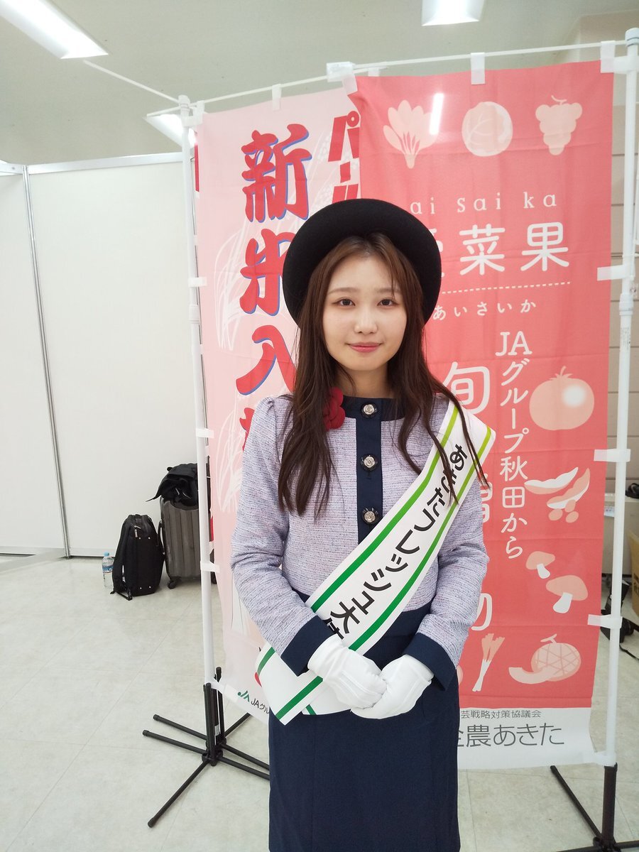 秋田フレッシュ大使さんはりんごジュースを勧めて下さいました。ほかにも鰰やギバサはじめ地場産🐟🍚のおいしそうなのが...! お忙しい中お写真ありがとうございました。#実りのフェスティバル #物産展 #観光PR #秋田 #池袋 pic.x.com/3grUGhasyq