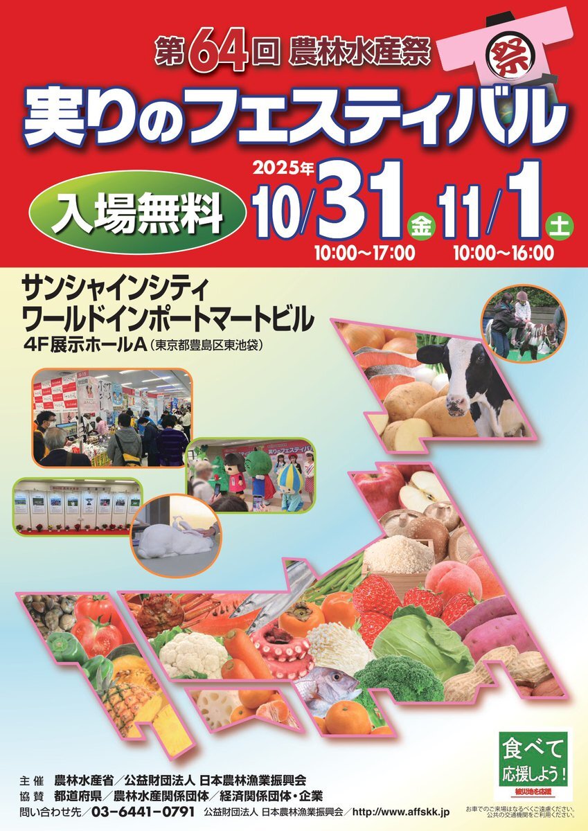 【👻ハッピーハロウィーン🎃】 本日10/31(金)と11/1(土)に #池袋 ・サンシャインシティで行われる「第64回 農林水産祭 #実りのフェスティバル 」に #JAさいたま が初出店!✨ オリジナル商品のロールケーキやグミ、新米『彩のきずな』を販売します🎉 お近くにお越しの際は是非お立ち寄りください🙌
