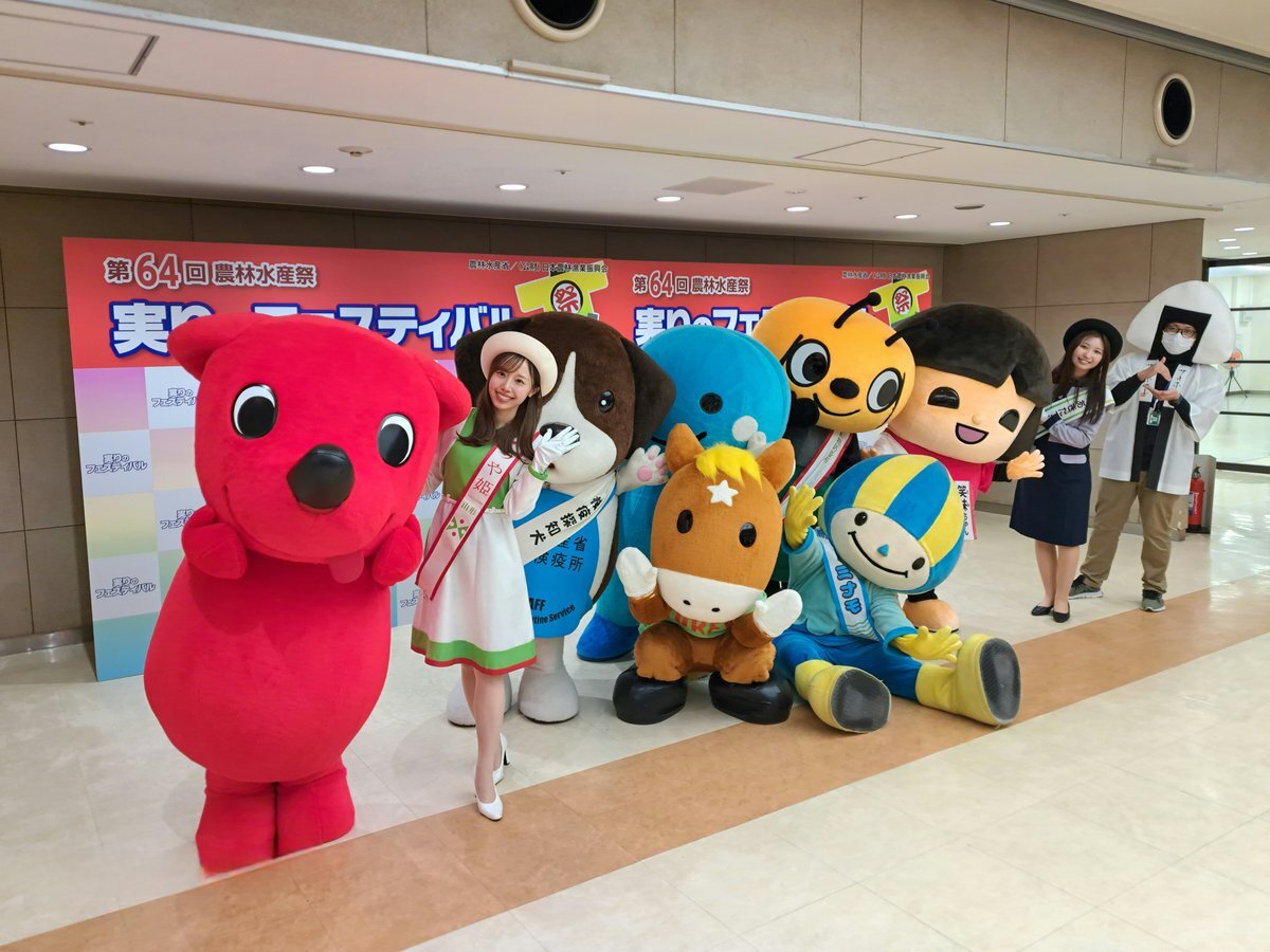 #実りのフェスティバル 初日 其ノ漆 です 食の大使の方々と、キャラクターさんです📷️ 有り難うございましたm(__)m 詳しくは、インスタグラムを見てくださいねm(__)m #あきたフレッシュ大使 #とやま食の王国大使ふふふ #つや姫レディ雪若丸クルー pic.x.com/JKAjRXKo1m