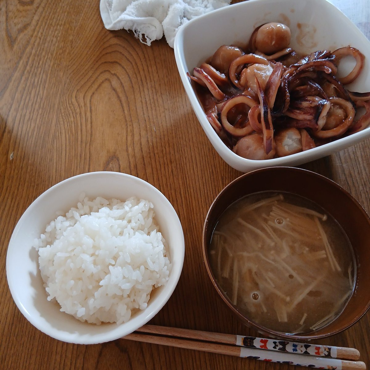 🌞昼 イカと里芋の煮物 えのきのみそ汁 白ごはん 🍵玄米茶 みかんや柿も食べました😋 #昼ごはん #昼食 #実家ごはん #母の味 #我が家の味 #食事日記 #健康美pic.x.com/9kq01NOx7S